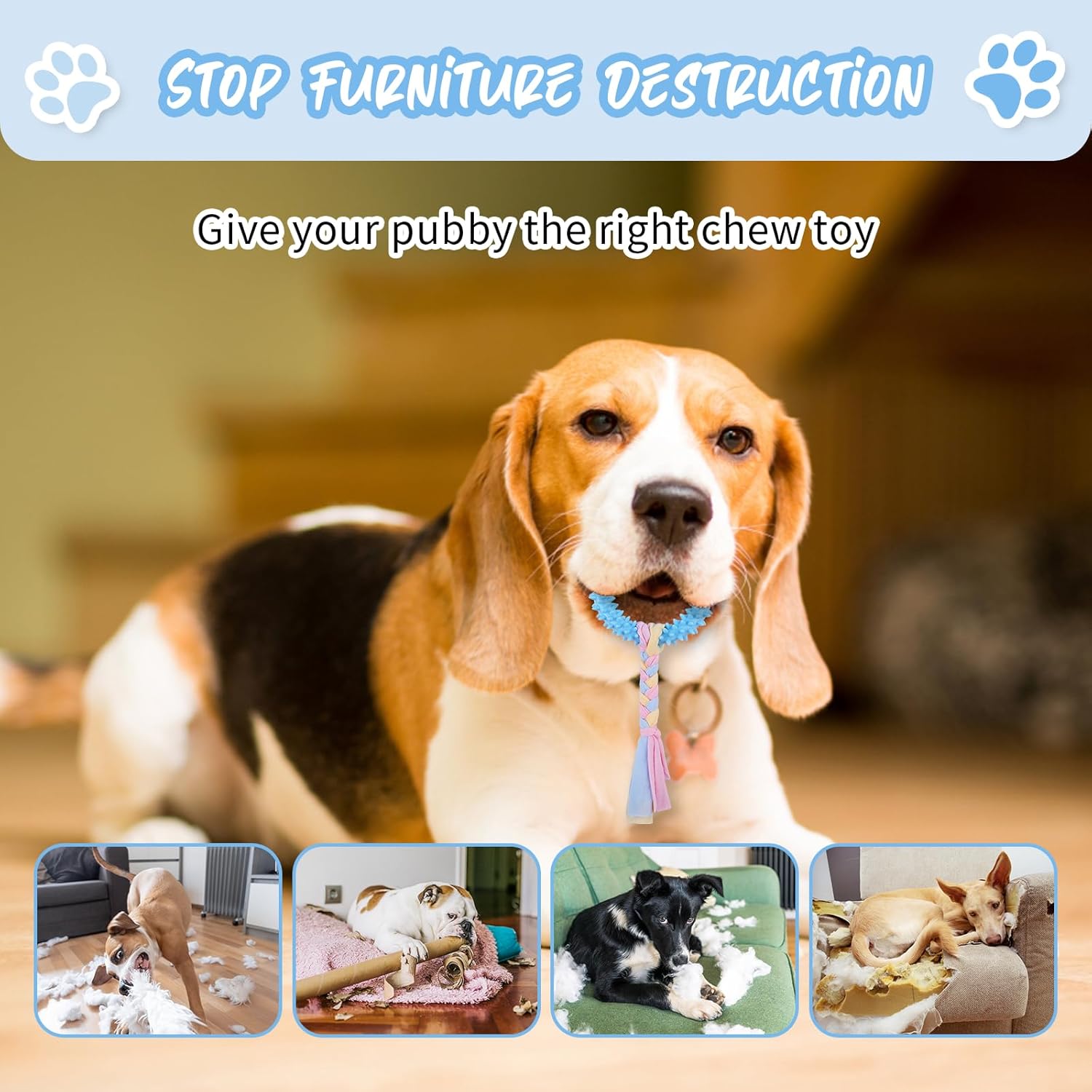 【Interactive Chew Toy】You can use puppy chew toy to interact with your dog and promote the relationship between human and pet. Or do some training on the dog to develop the intelligence of the dog. puppy chew toy can also help dogs relieve stress and make them grow healthier