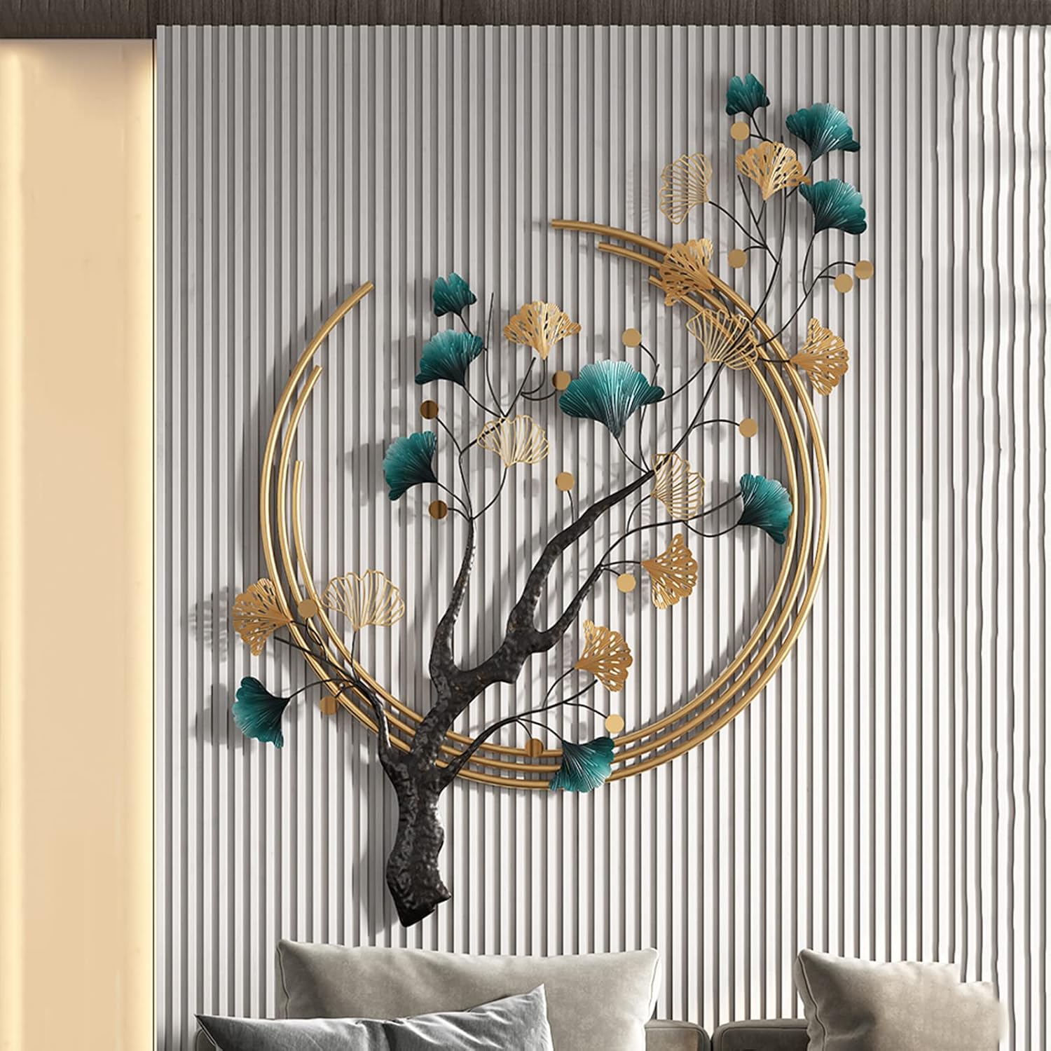 Ainydie Luxury Metal Ginkgo Tree Leaf Wall Art, Creative Handmade Wall Sculpture, Nature Home Art Decoration forHome Living Room Bedroom Kitchen Hotel,110x68cm