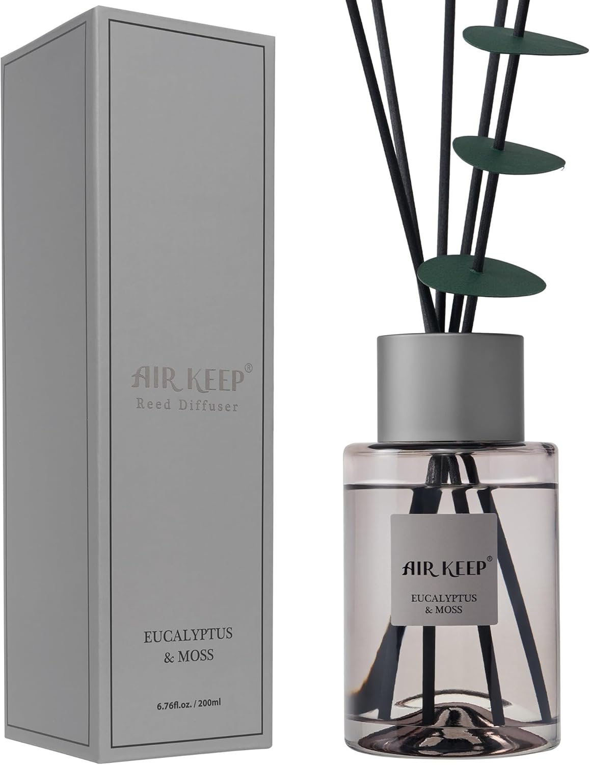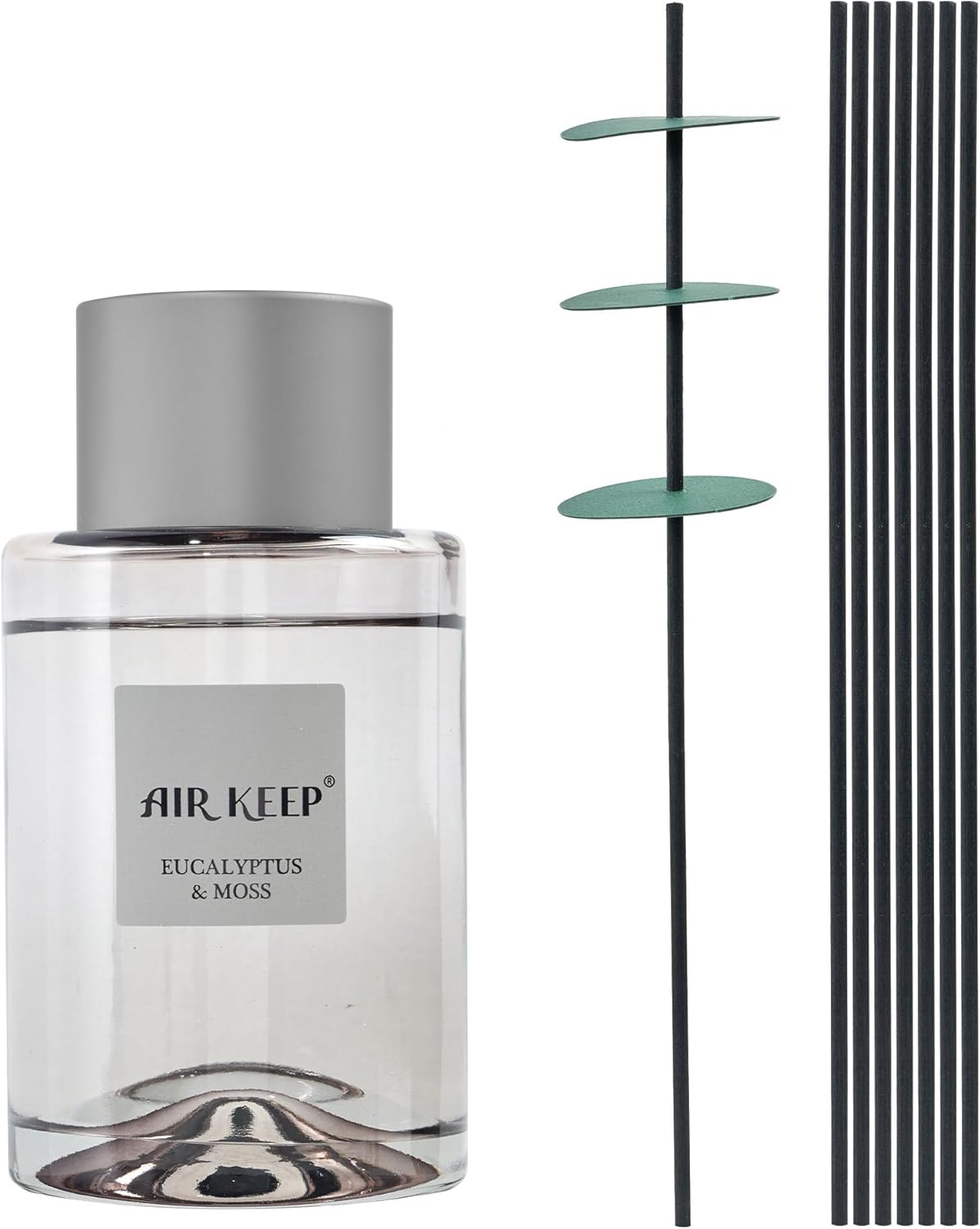 Eucalyptus&Moss: Airkeep reed diffuser is infused with the soothing scent of eucalyptus, creating a relaxing and inviting atmosphere. The natural fragrance helps to relieve stress and promote relaxation.