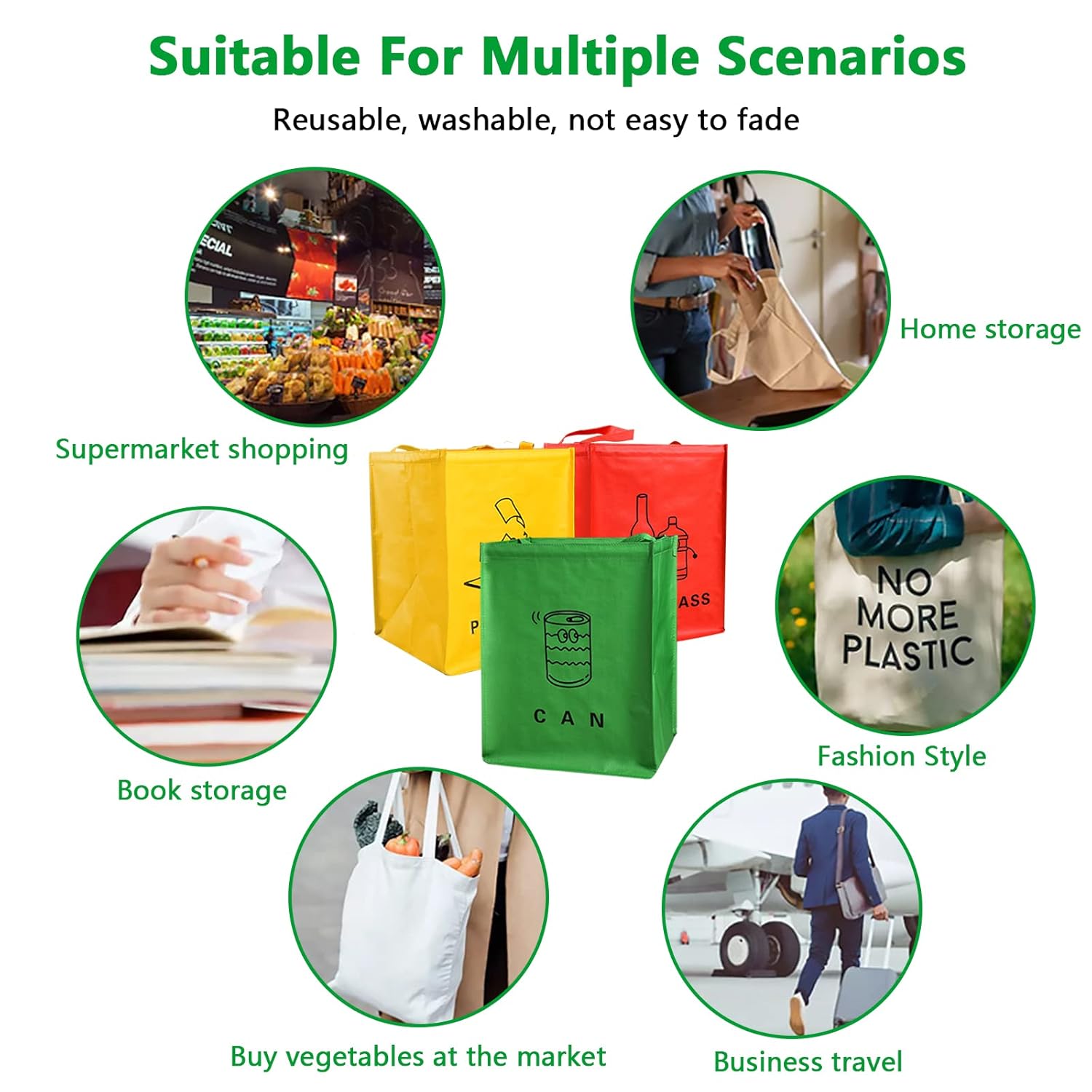 🎁【Premium Materials】: This trash sorting system is woven from high quality PP, which is strong and durable, and the handle has good bearing capacity. The inside and outside of the garbage bag are waterproof and impermeable, and the water can be wiped dry with an easy-to-clean towel.