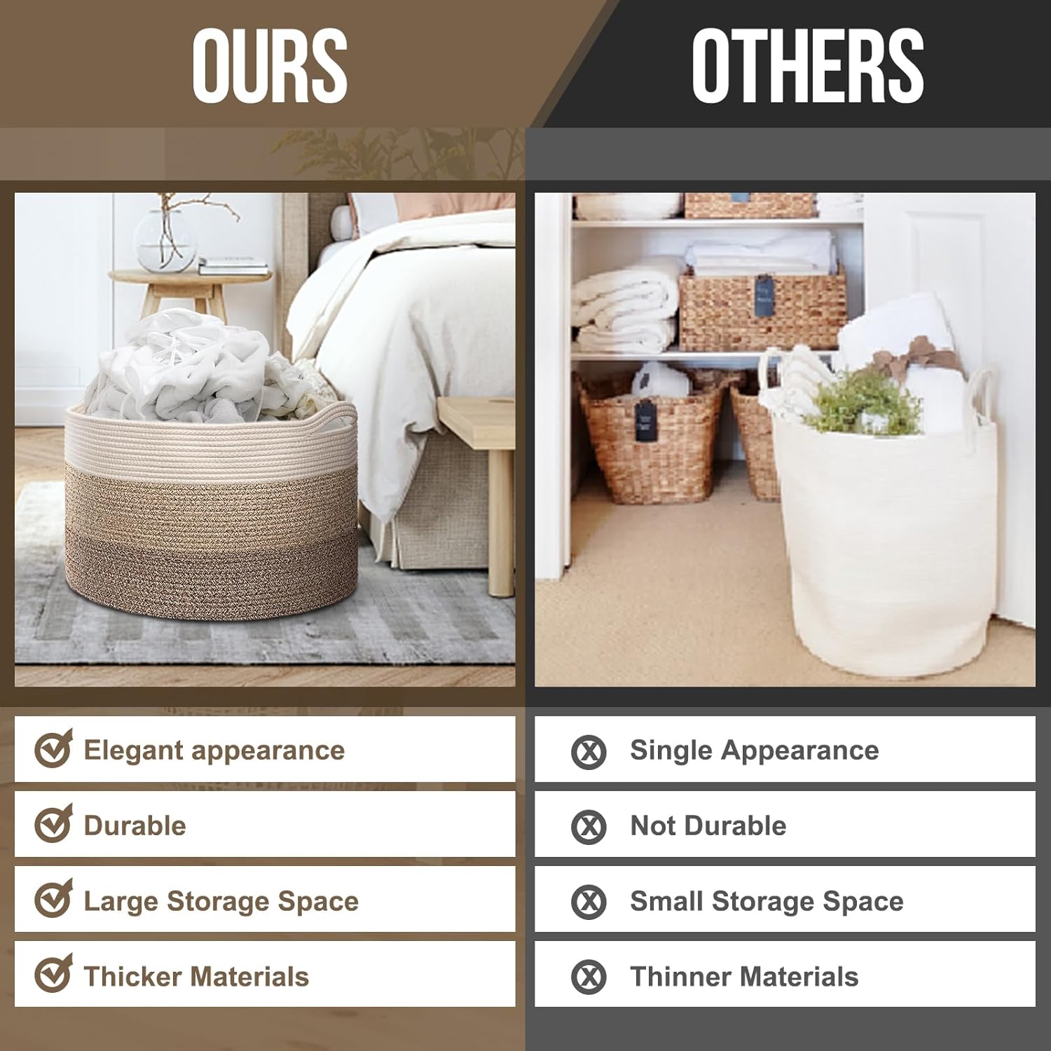 Our clothes baskets are meticulously crafted by experienced artisans who pay exceptional attention to seams and intricate details, ensuring you receive a chic and flawlessly decorative basket.