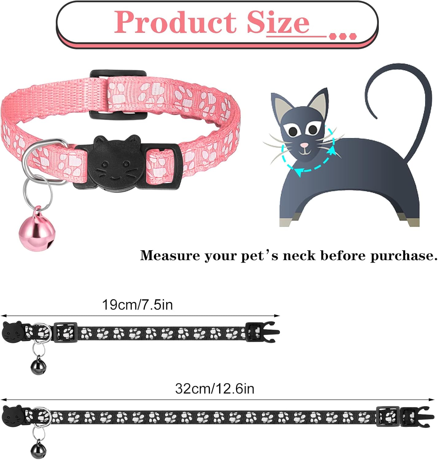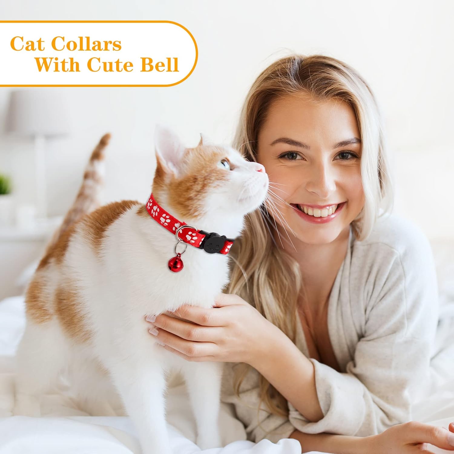 AKlamater 5Pcs Cat Collars with Bells Adjustable Kitten Collar Quick Release Safety Collar with Anti-lost Tags for Cats, Kitten, Small Pet