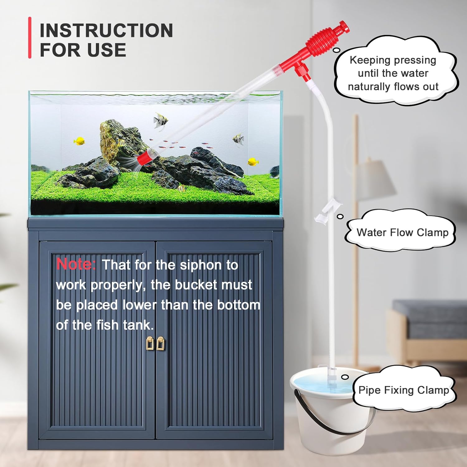 🎣【Quick & Simple Water Change】The siphon pump is easy to grip. just press the airbag a few times, the water starts flowing automatically. You can replace about 30L of water in just 5 minutes. The included water flow clamp lets you control the flow for utmost convenience. (Note: the position of the water outlet must be lower than the inlet).