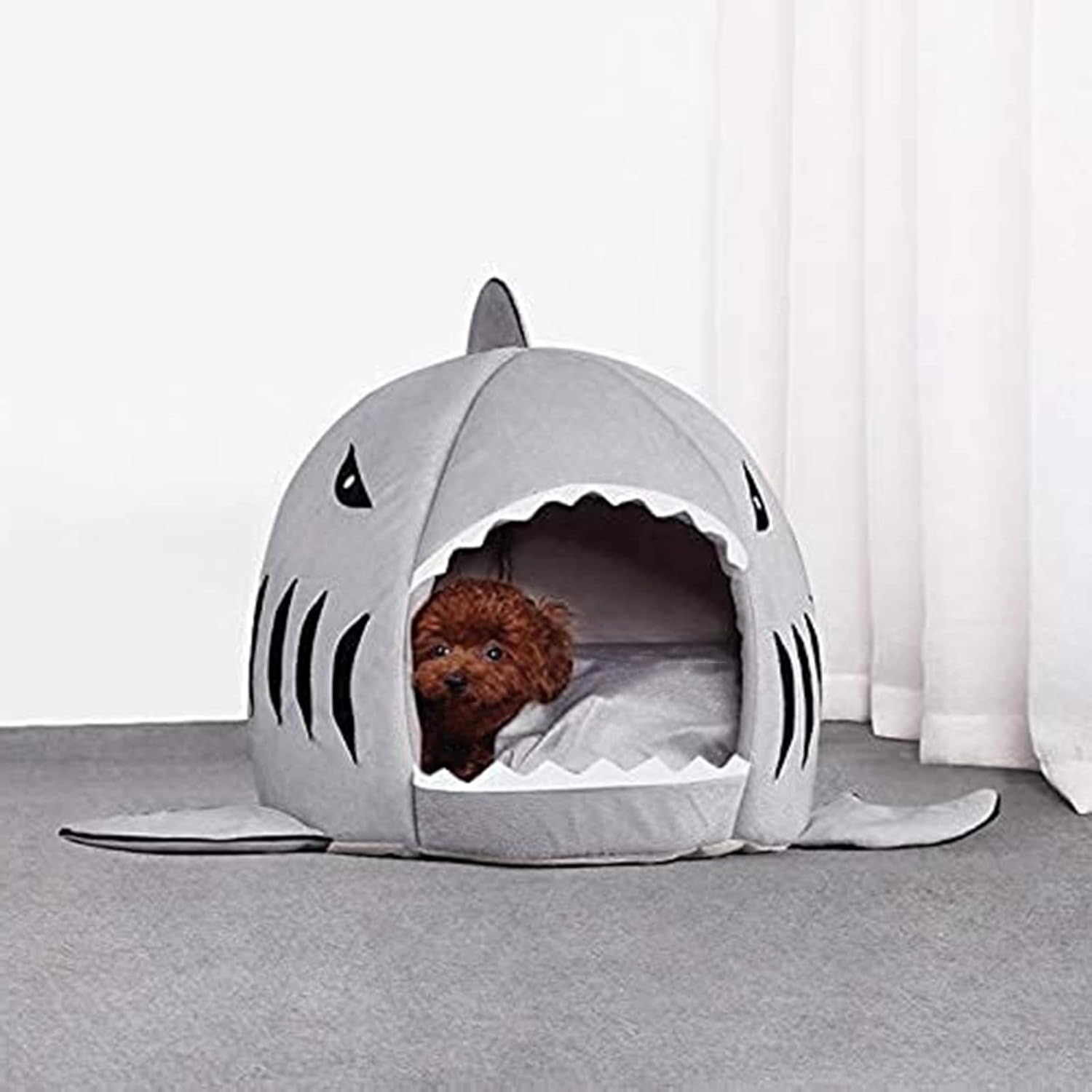 [Versatile Kennel]This shark pet bed can be used as a comfortable covered burrow hideout or folded into a cute pet sofa where your pet can sleep directly on the soft inner cushion for maximum comfort.