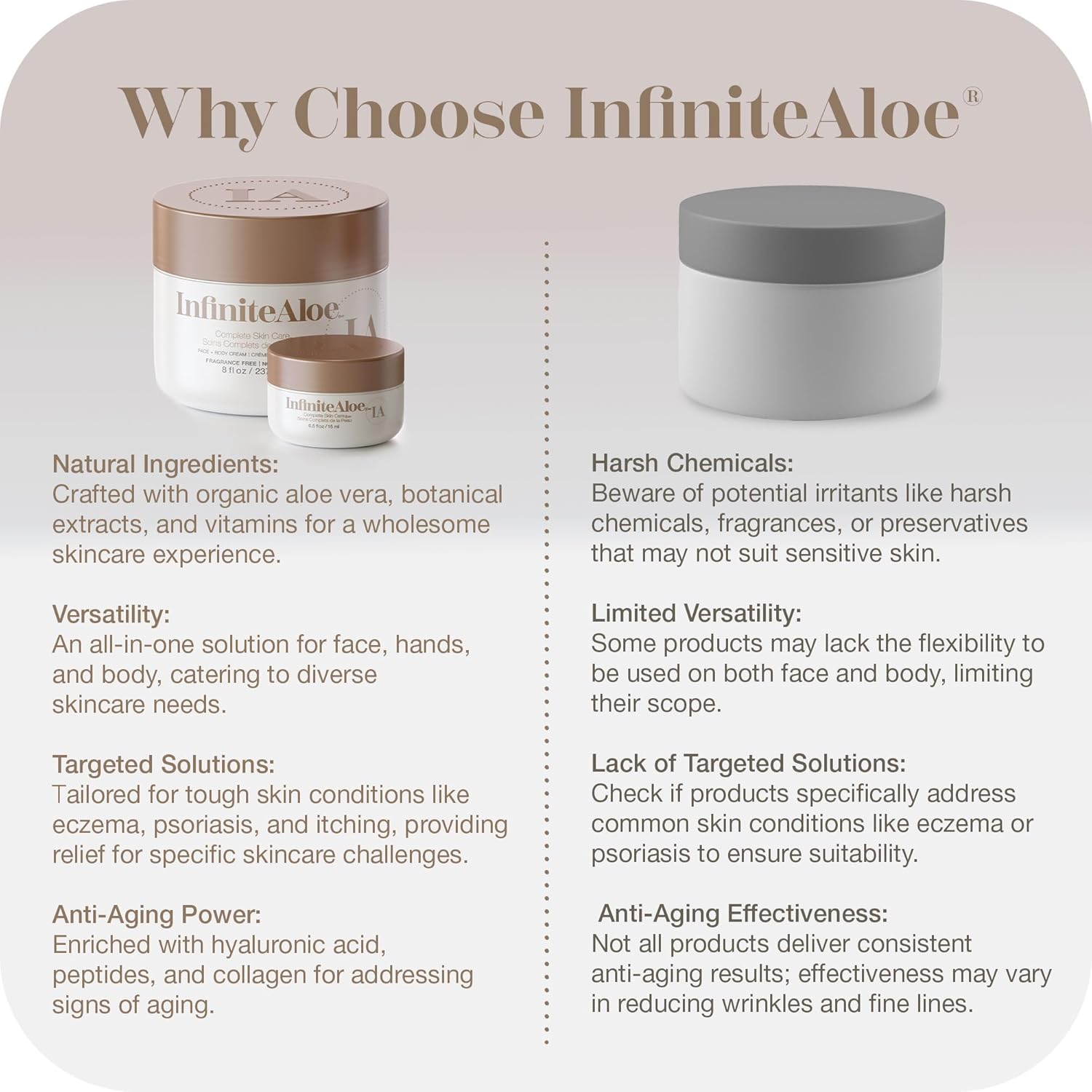 Your Skin’s Hero – Take control of your skin’s feel and appearance with a comprehensive body and face lotion from InfiniteAloe. Hydrate, soothe, and restore all of your skin for a brighter glow.