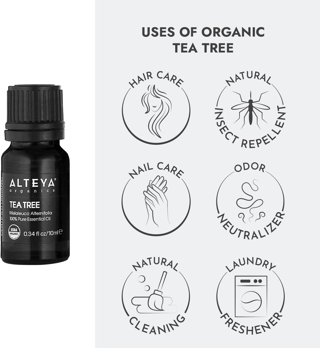 Alteya Organic Tea Tree Oil (Melaleuca Alternifolia) 10 ml – 100% USDA Certified Organic Pure Natural Tea Tree Essential Oil