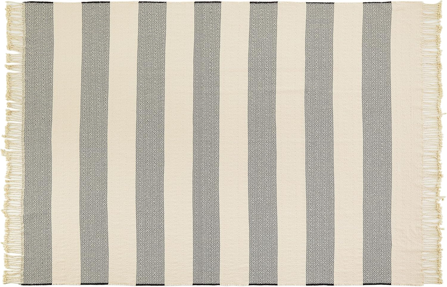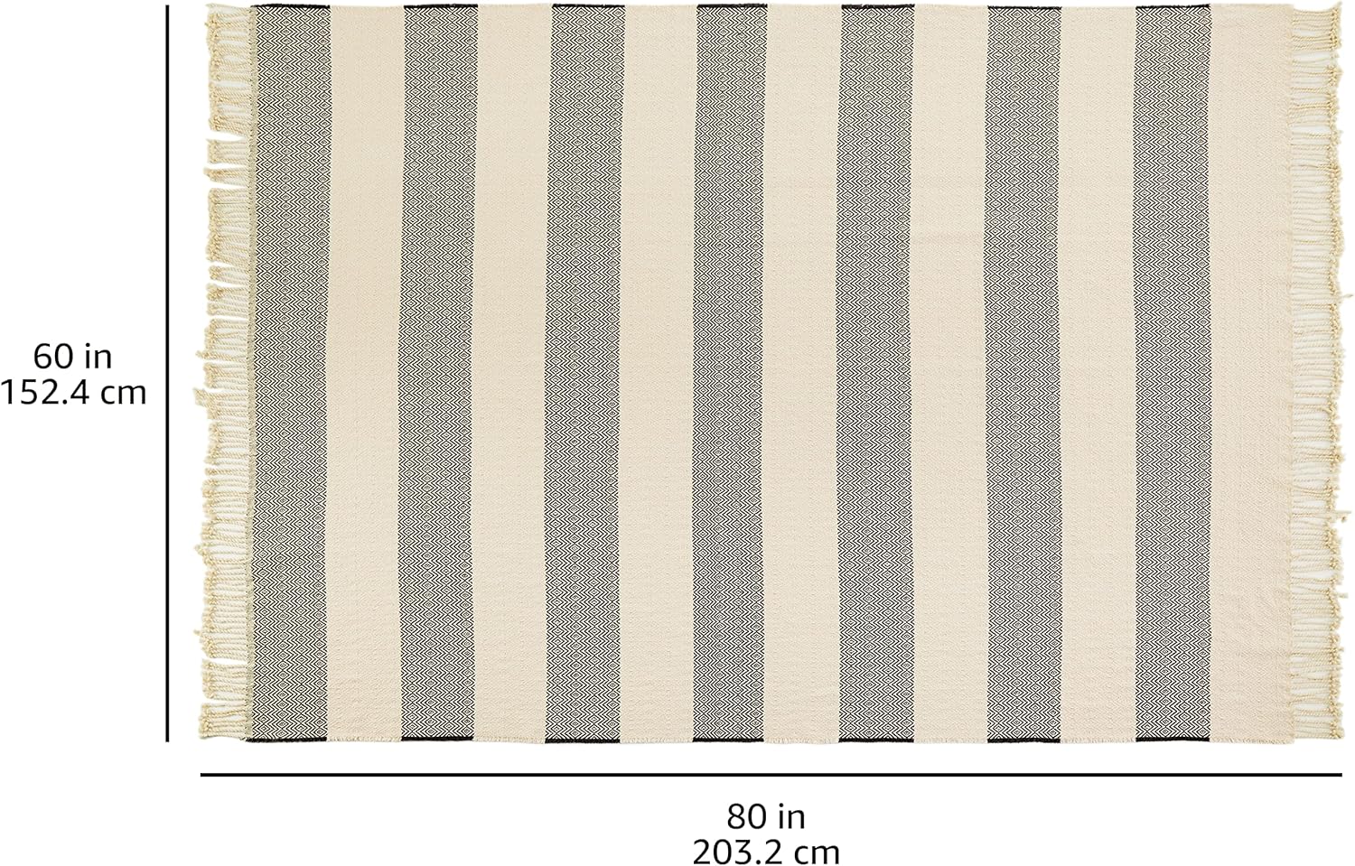 Amazon Aware Woven Cotton Striped Throw Blanket, Natural/Charcoal, 152.4 x 203 cm