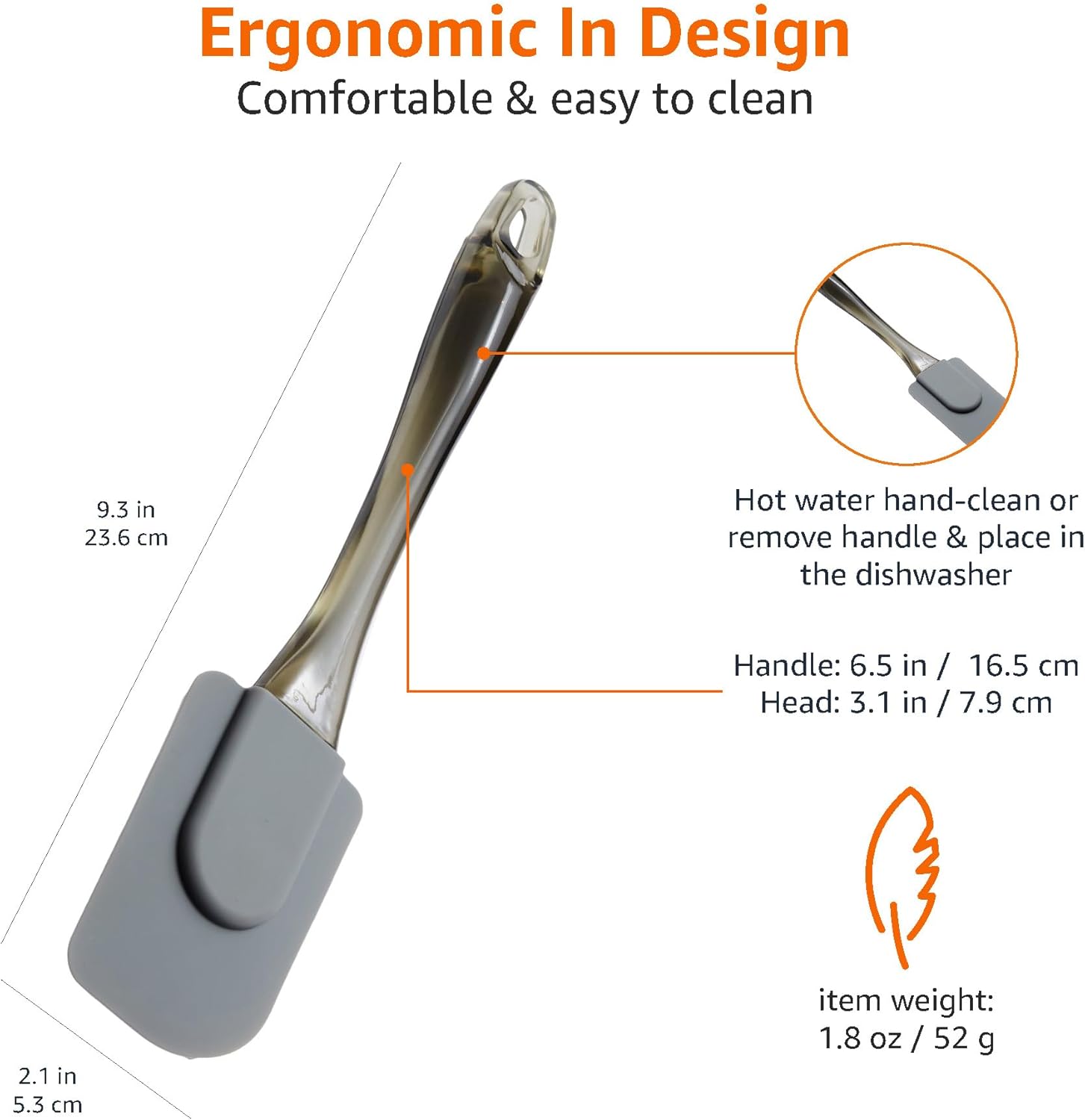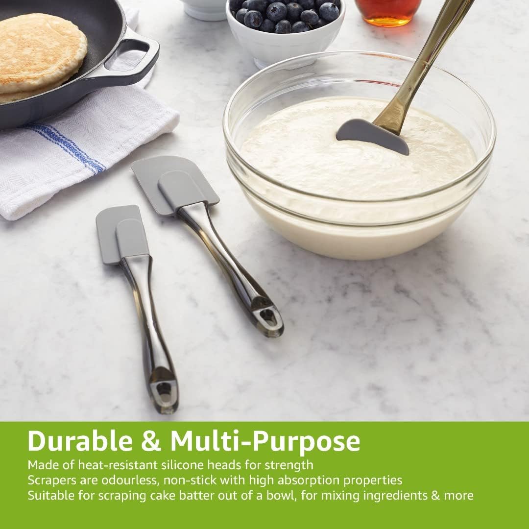 Ideal for new bakers or anyone setting up a first-time kitchen, this three-piece set of AmazonBasics silicone spatulas offers exceptional versatility and convenience. The spatulas feature grey heat resistant silicone heads for strength, along with securely attached translucent grey handles that look sleek in any contemporary kitchen.