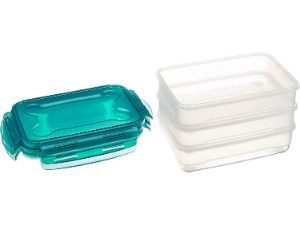 The Amazon Basics food-storage containers open and close easily and move seamlessly from the refrigerator or freezer to the microwave oven for conveniently reheating leftovers (unlock and loosen or completely remove the lid first). The food-storage containers are also dishwasher-safe (top rack) for quick, easy clean-up. Experience an optimal food-storage solution with the Amazon Basics six-piece food-storage container set.