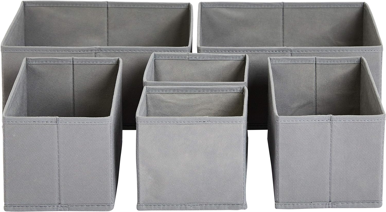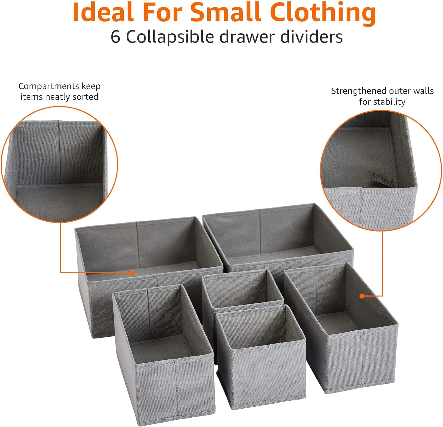 Amazon Basics Collapsible Clothes Drawer Organisers / Dividers for Wardrobe Bedroom or Kitchen, Set of 6, Grey