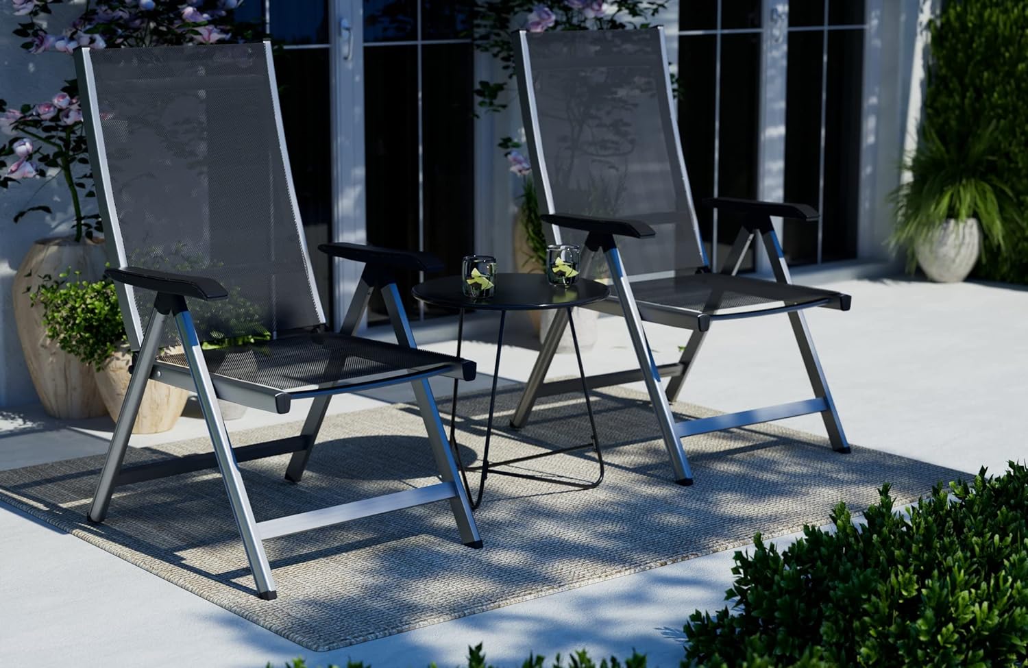 In-the-Box: Set of 2 adjustable & long-lasting outdoor chairs. Support maximum weight of up to 113kg (17st and 11.1lbs)