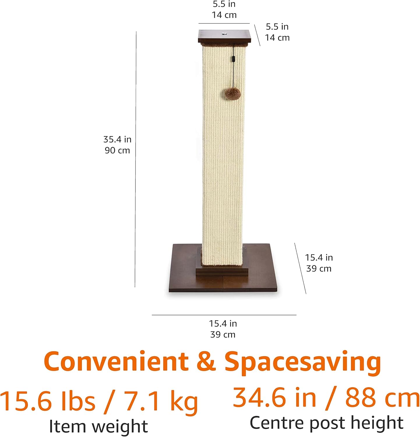 Amazon Basics Large Premium Tall Cat Scratching Post – 16 x 35 x 16 Inches, Wood