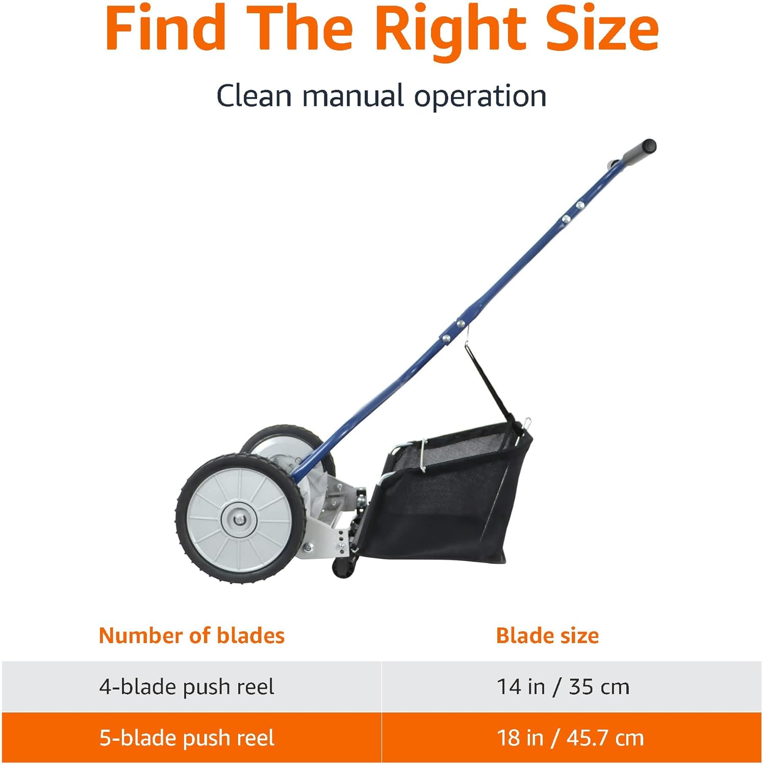 5-Blade Push Reel Lawn Mower With Grass Catcher, 45.7 cm