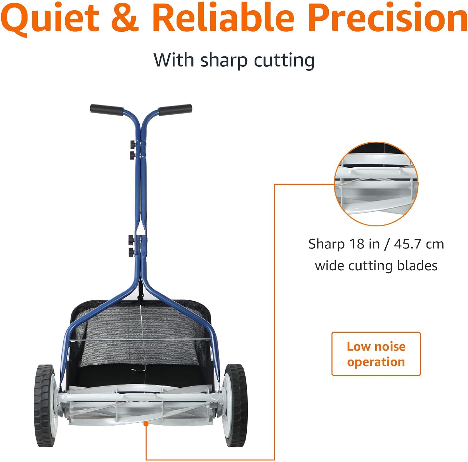 Amazon Basics Push Reel Lawn Mower, 46cm 5-blade with grass catcher, Blue