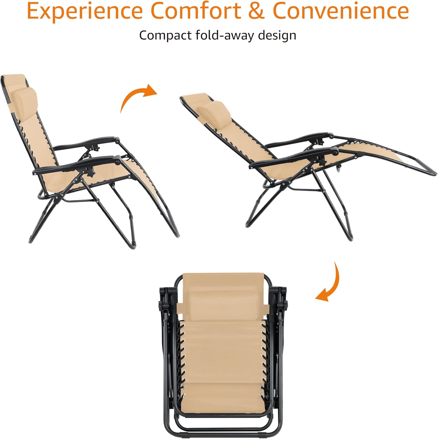 Let the day’s stress drift away with this zero-gravity chair by AmazonBasics. The outdoor lounge chair offers a wonderful place to sit and relax—perfect for poolside or on a back deck or patio. Transition effortlessly from an upright seated position to reclining for the full zero-gravity effect.