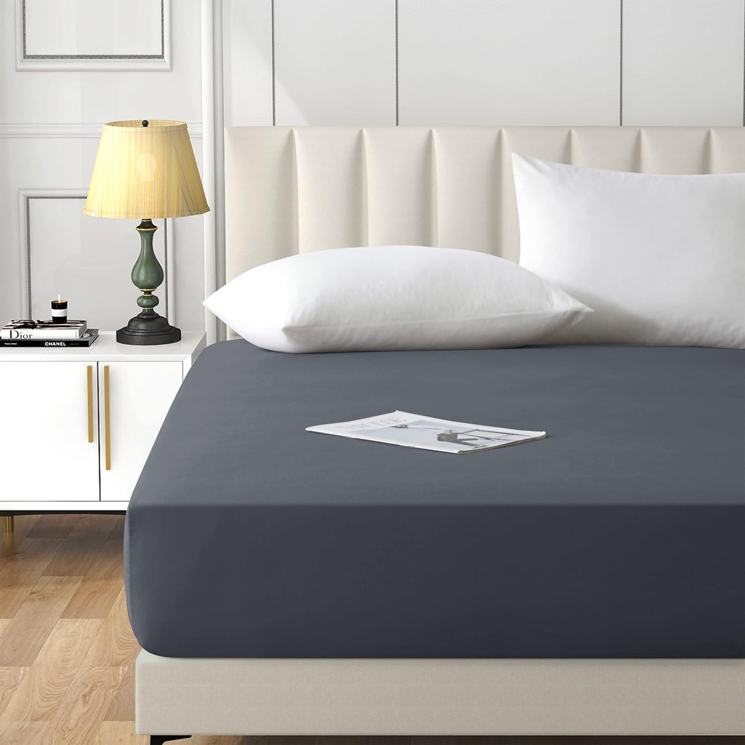AMEHA Fitted Sheet Double 25 cm Deep Bed Sheets Easy Care Brushed Microfiber Elastic Fitted Bed Sheet Shrinkage Resistant (Charcoal/Dark Grey, 137 x 191cm)