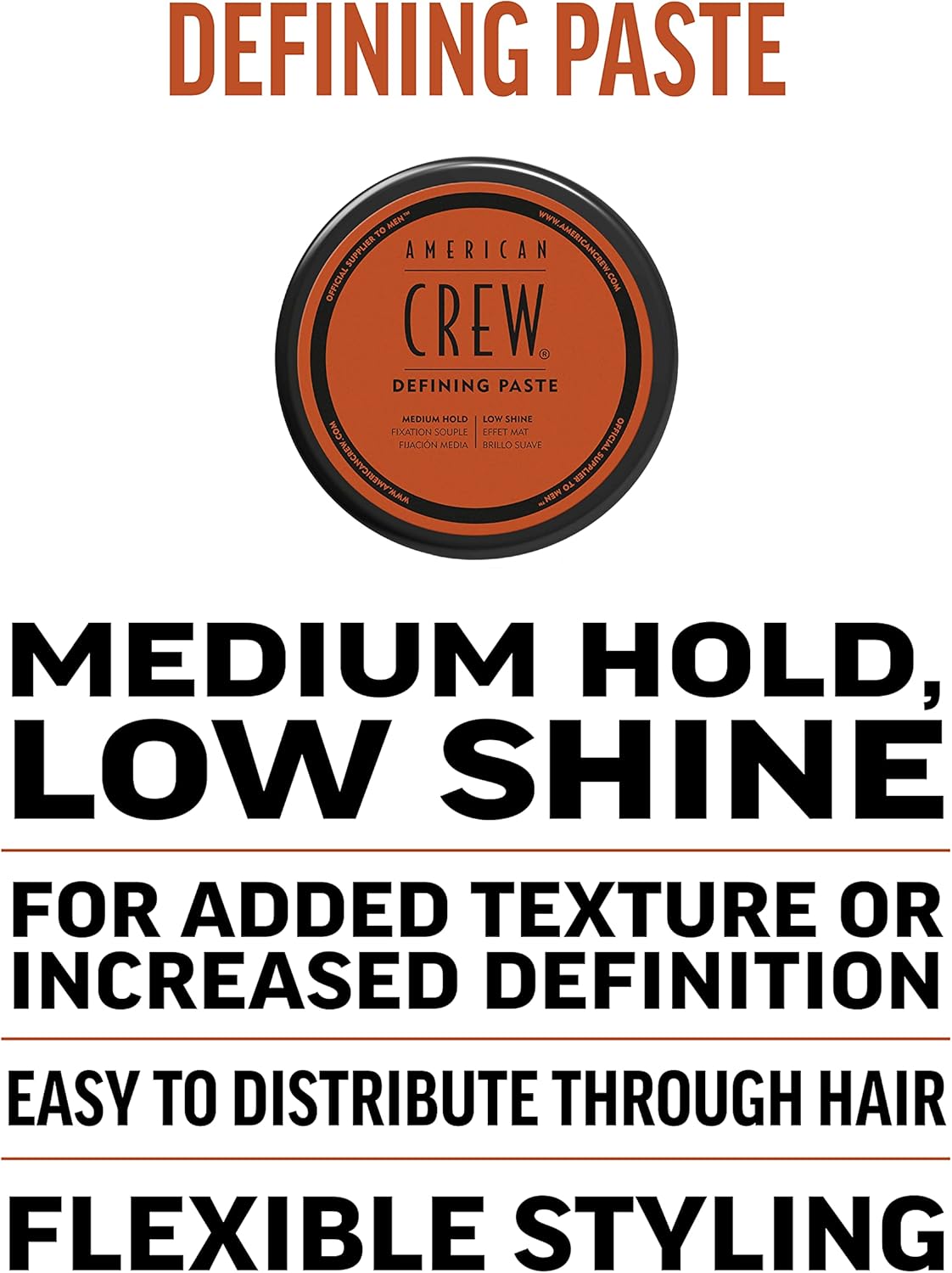 American Crew Defining Paste with Medium Hold & Low Shine, Gifts For Men, For Thickening & Texture (85g) Matte Finish, Hair Styling Wax for Men