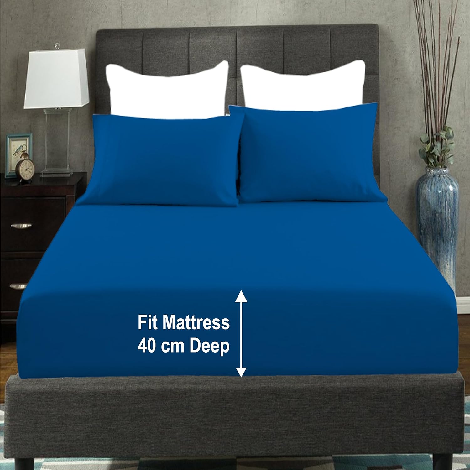 Amigozone Extra Deep 16″(40cm) Non Iron Percale Pollycotton Fitted Sheets (Double, Royal Blue)