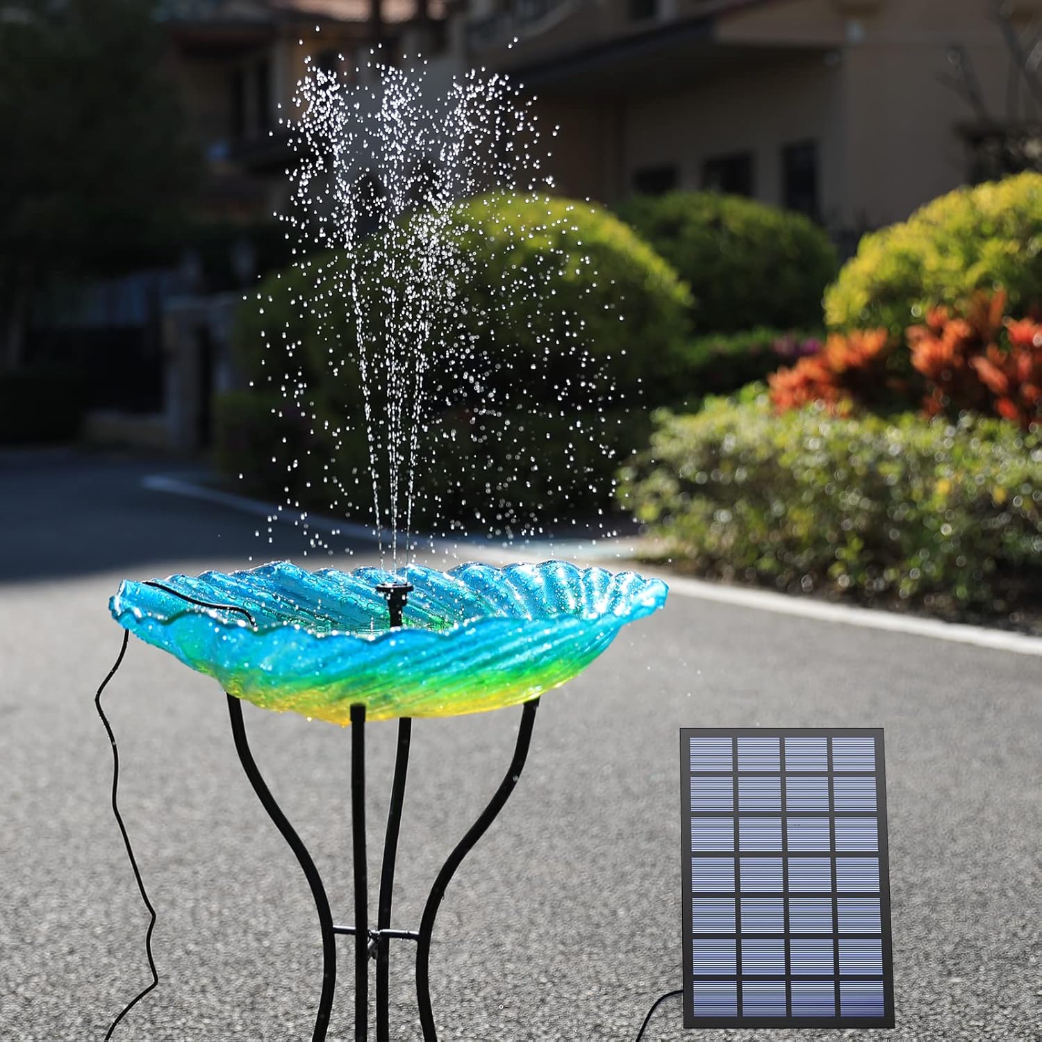 🍀【DIY Solar Water Pump Kit】AMZtime 2.5w solar water fountain comes with an upgraded solar wafer panel, six types of nozzles, 3.9ft hose and can be used in full direct sunlight to add a variety of DIY water features for your garden. Can be used with birdbaths and fish tanks and ponds to make your garden look comfortable and attractive.