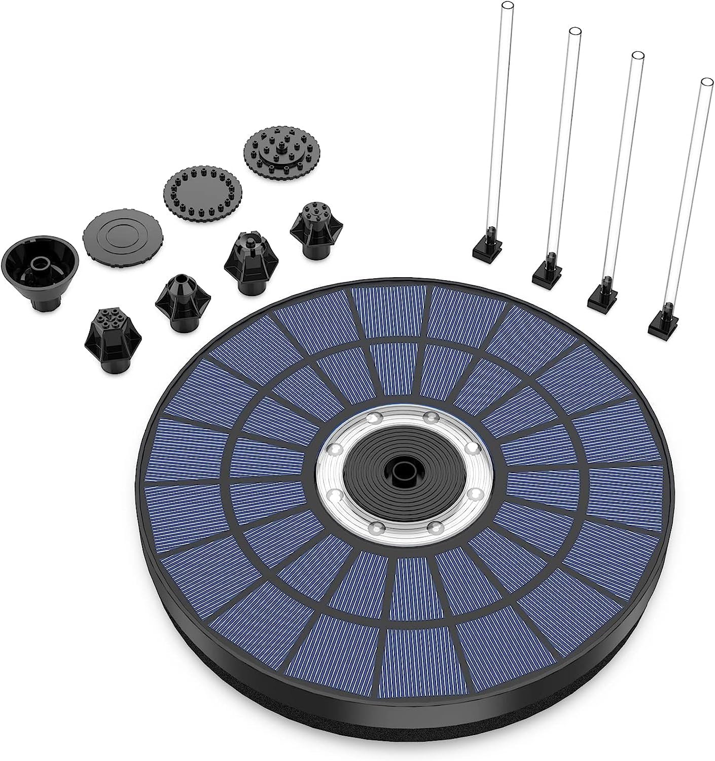 AMZtime Led Solar Water Fountain, 5.5W LED Circle Floating Solar Powered Pump with 7 Nozzles for Water Feature, LED Solar Water Pump for Bird Bath, Garden, Fish Tank, Patio, Pond