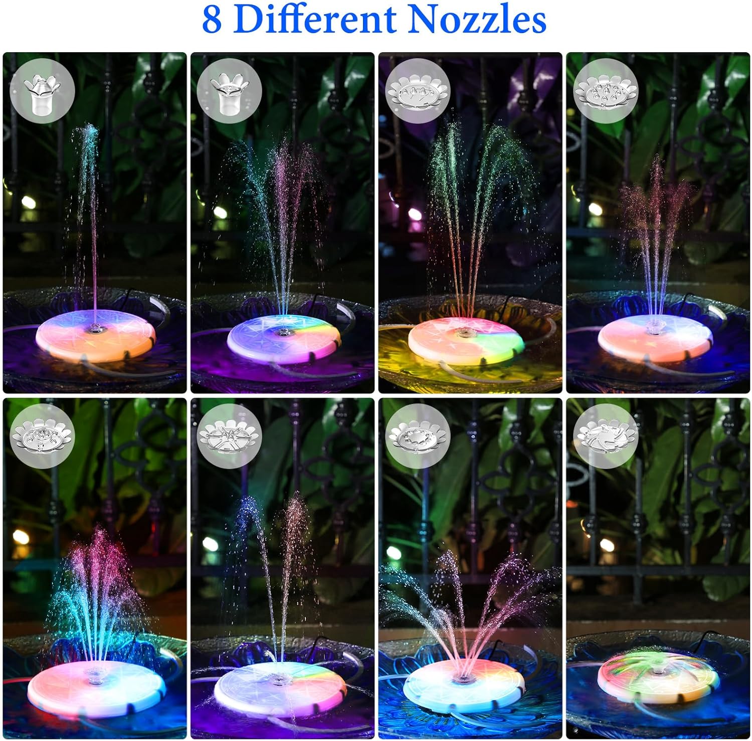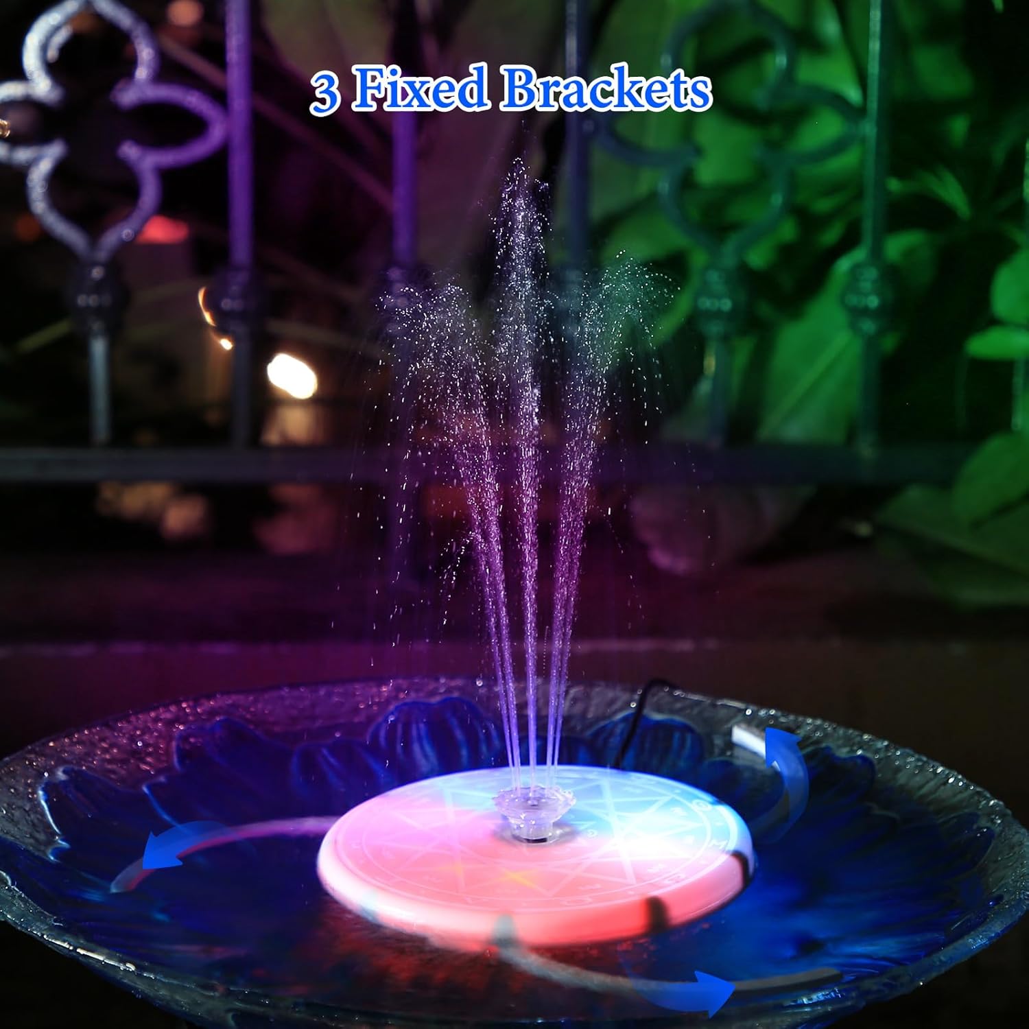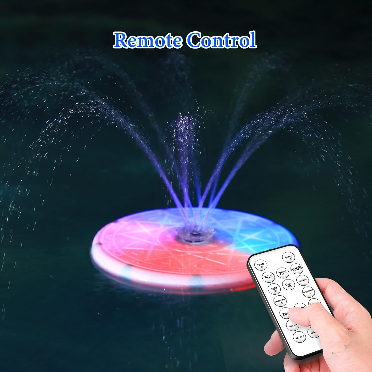 AMZtime USB LED Water Fountain Pump, Remote Control Floating Pond Fountain with Colorful Led & 3 Etractable Brackets for Bird Bath, Ponds, Garden, Outdoor and Indoor