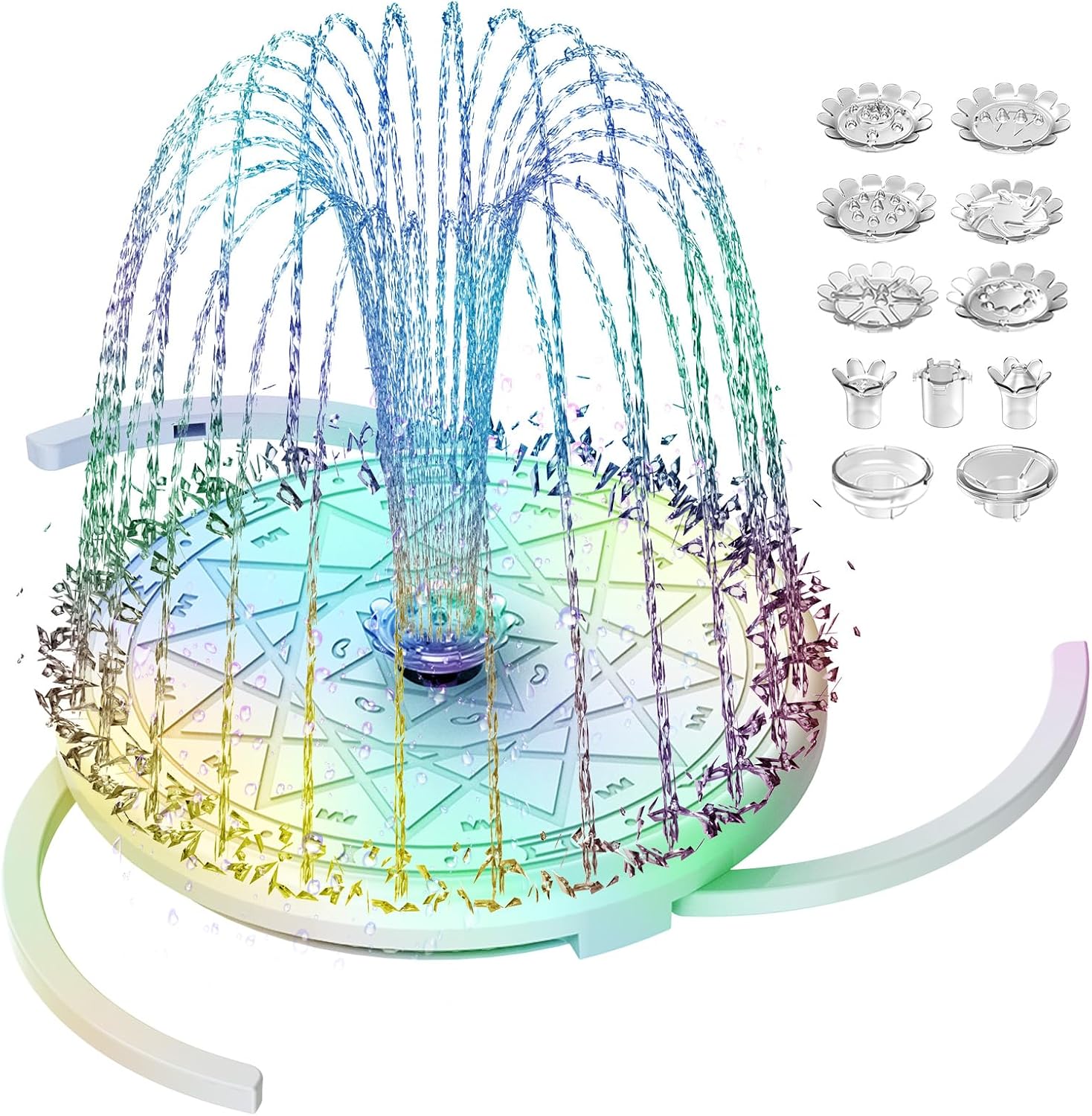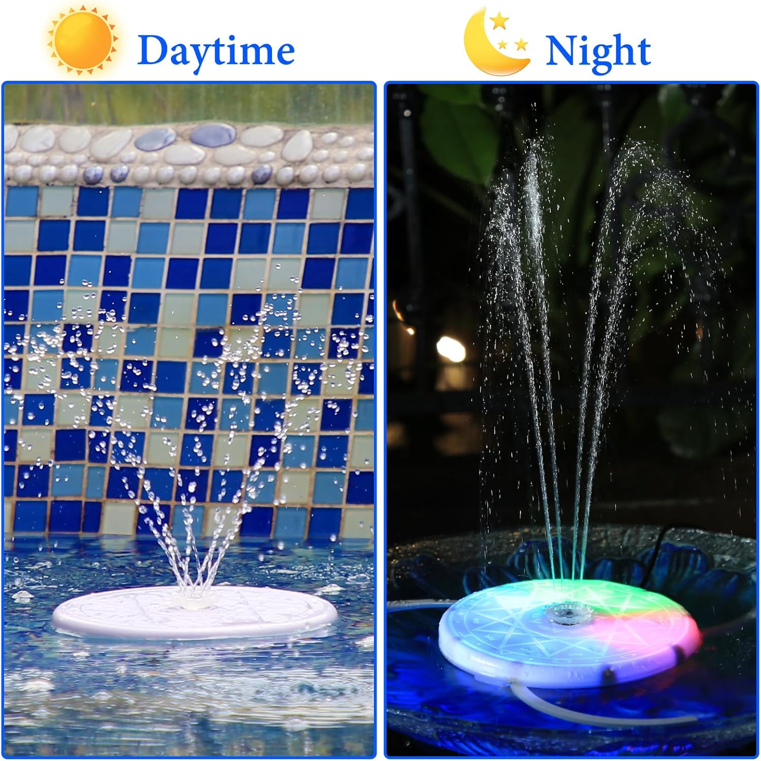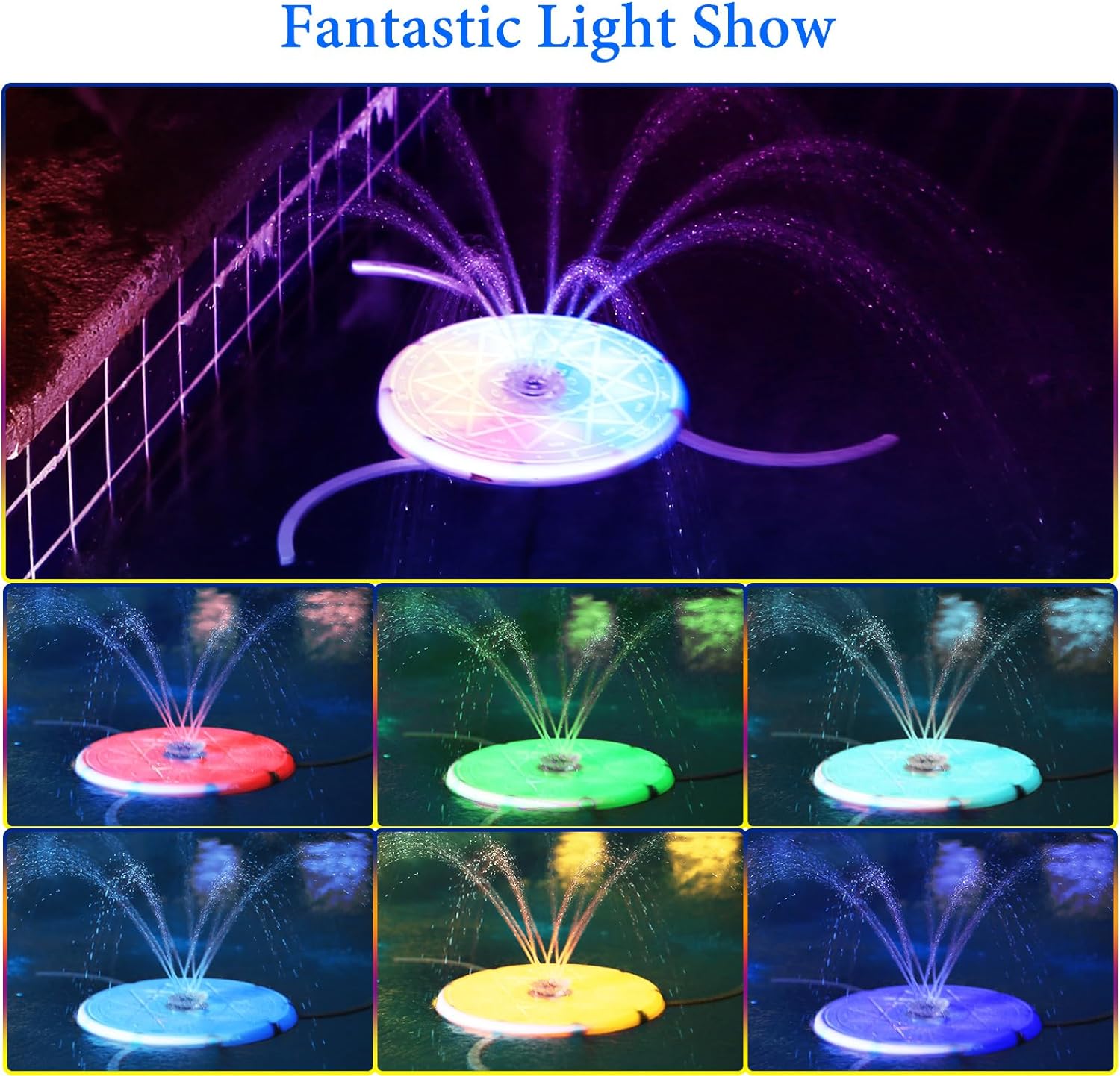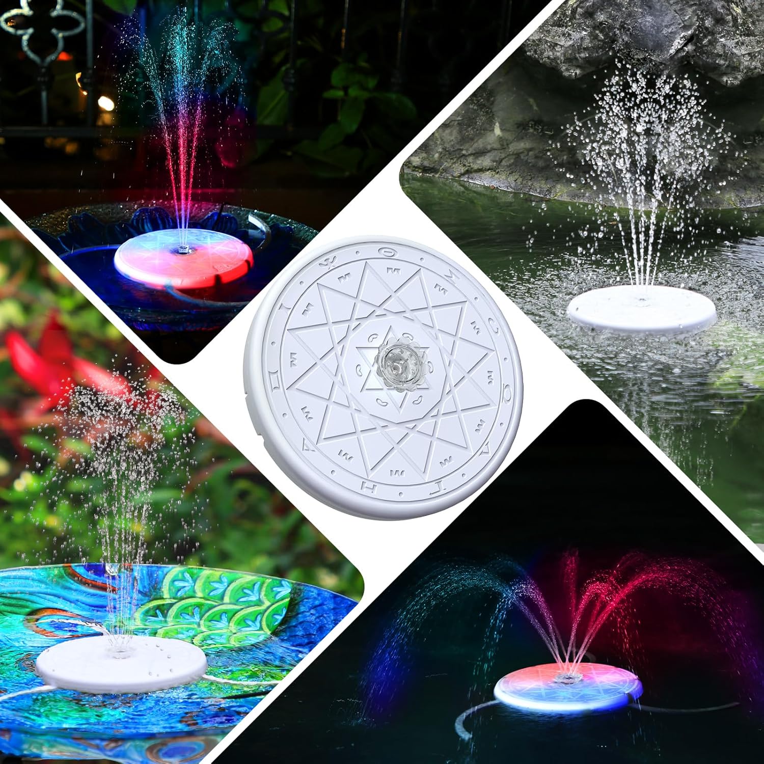 AMZtime USB LED Water Fountain Pump, Remote Control Floating Pond Fountain with Colorful Led & 3 Etractable Brackets for Bird Bath, Ponds, Garden, Outdoor and Indoor
