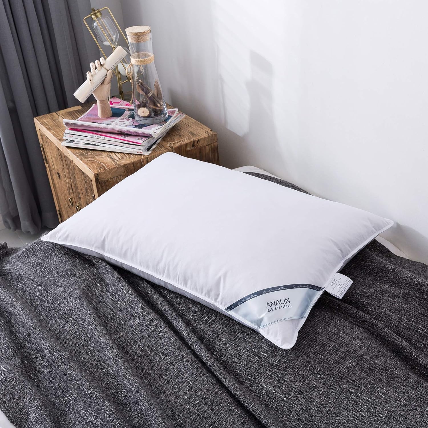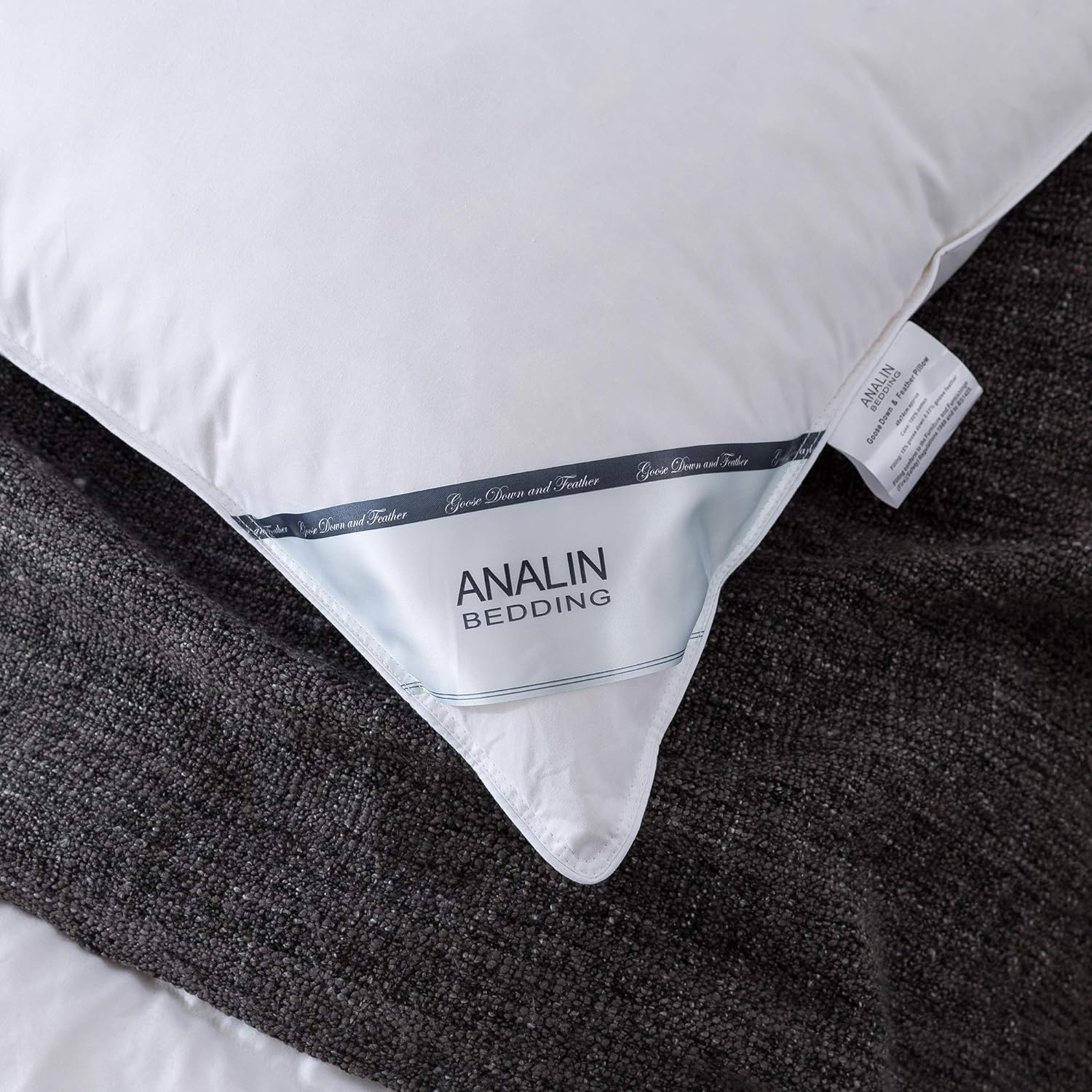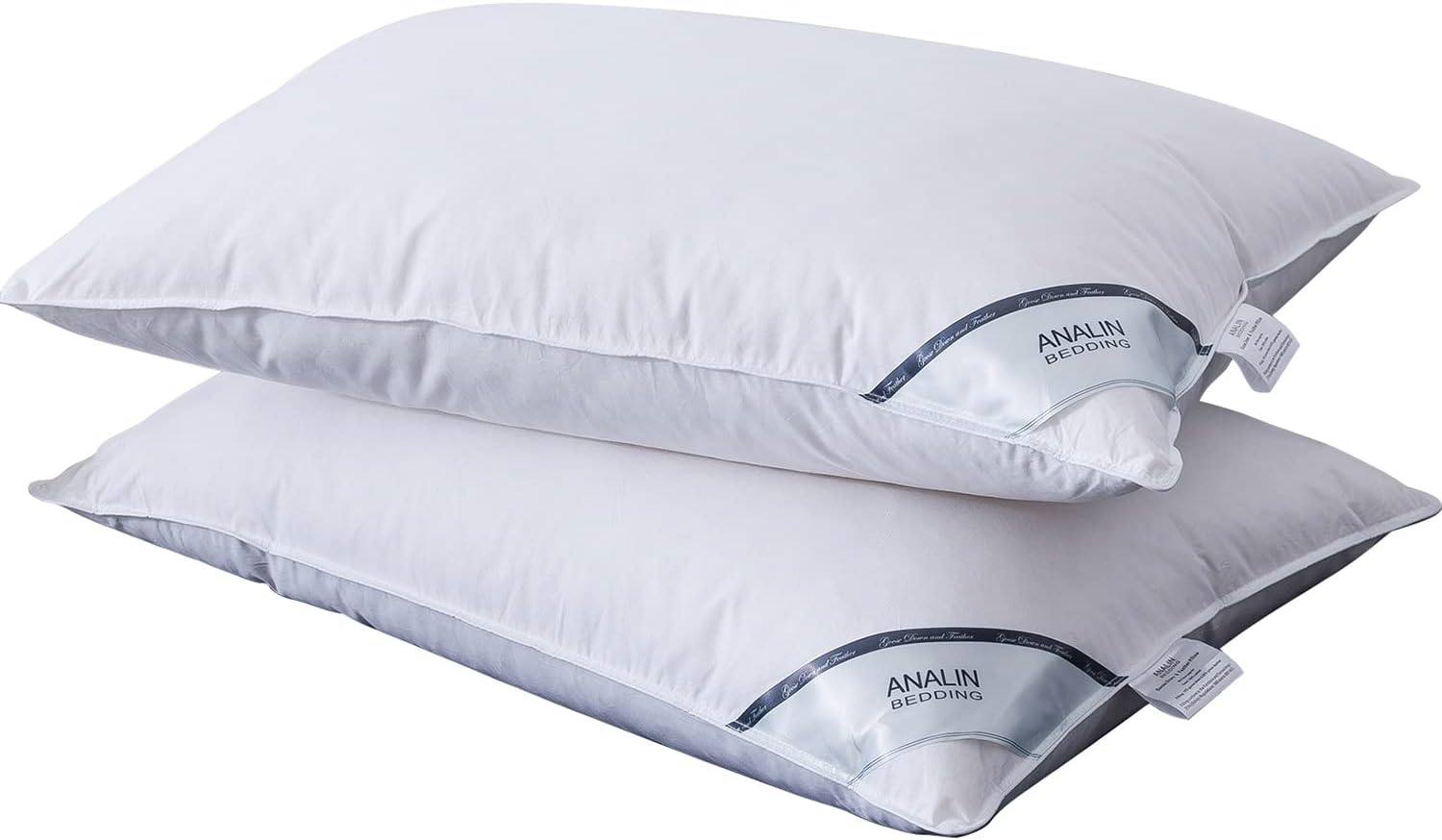 ANALIN 2 Pack Goose Feather Down Pillows, 100% Cotton Shell, Non-allergenic & Anti dust mite, Soft Hotel Quality Pillows (15% Goose Down)
