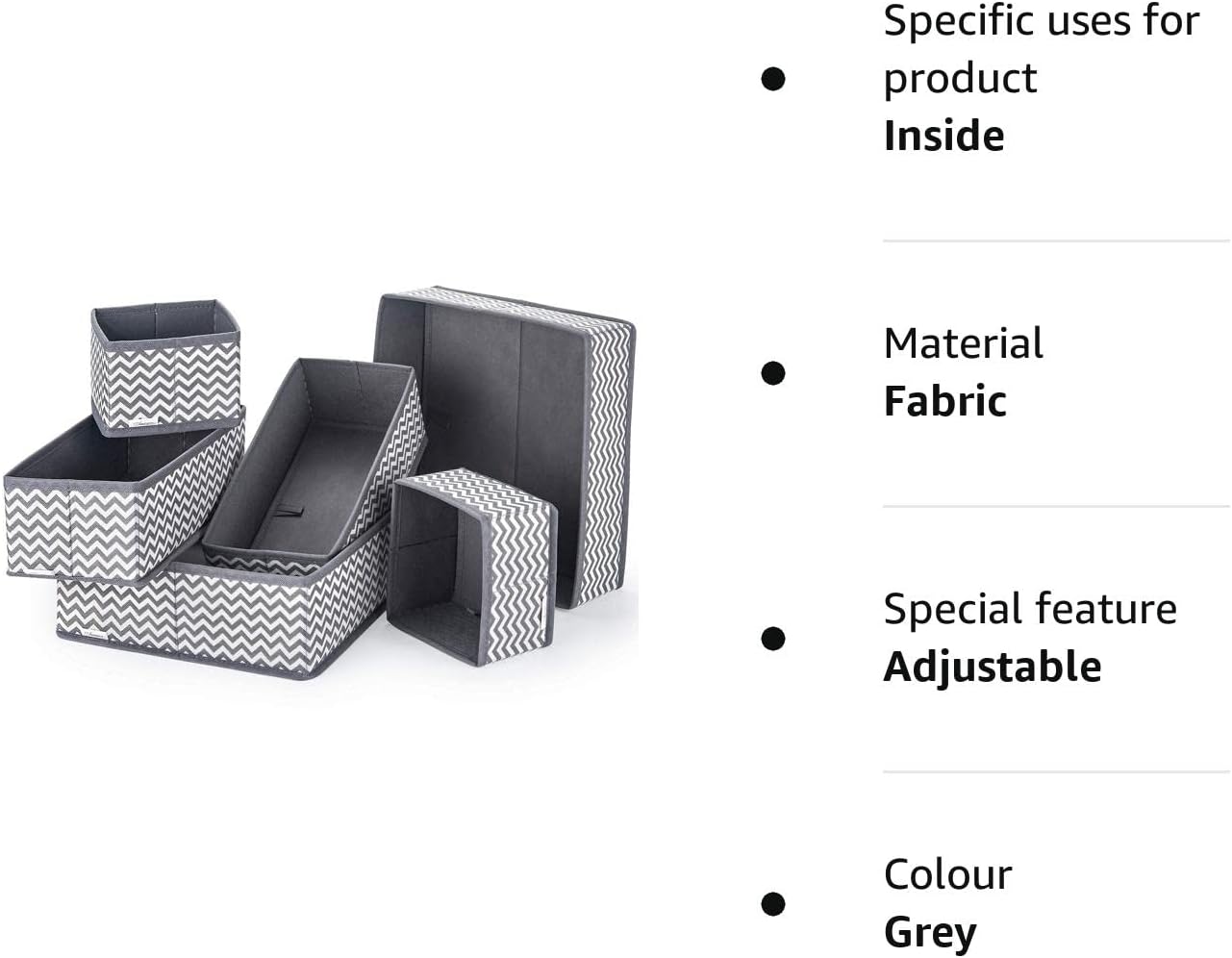 6 Pcs Organiser Set: Package Comes with 6 pcs set of collapsible drawer organizers boxes, which includes: 2 Large square box, 2 medium rectangular boxes and 2 small square bins