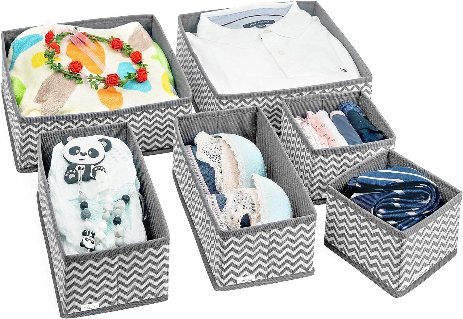 multi-purpose organizers and storage Boxes 6 Piece Set of Dresser organizer Easy to Assemble Collapsible Drawer Dividers Versatile drawer organiser divider Durable Fabric Material