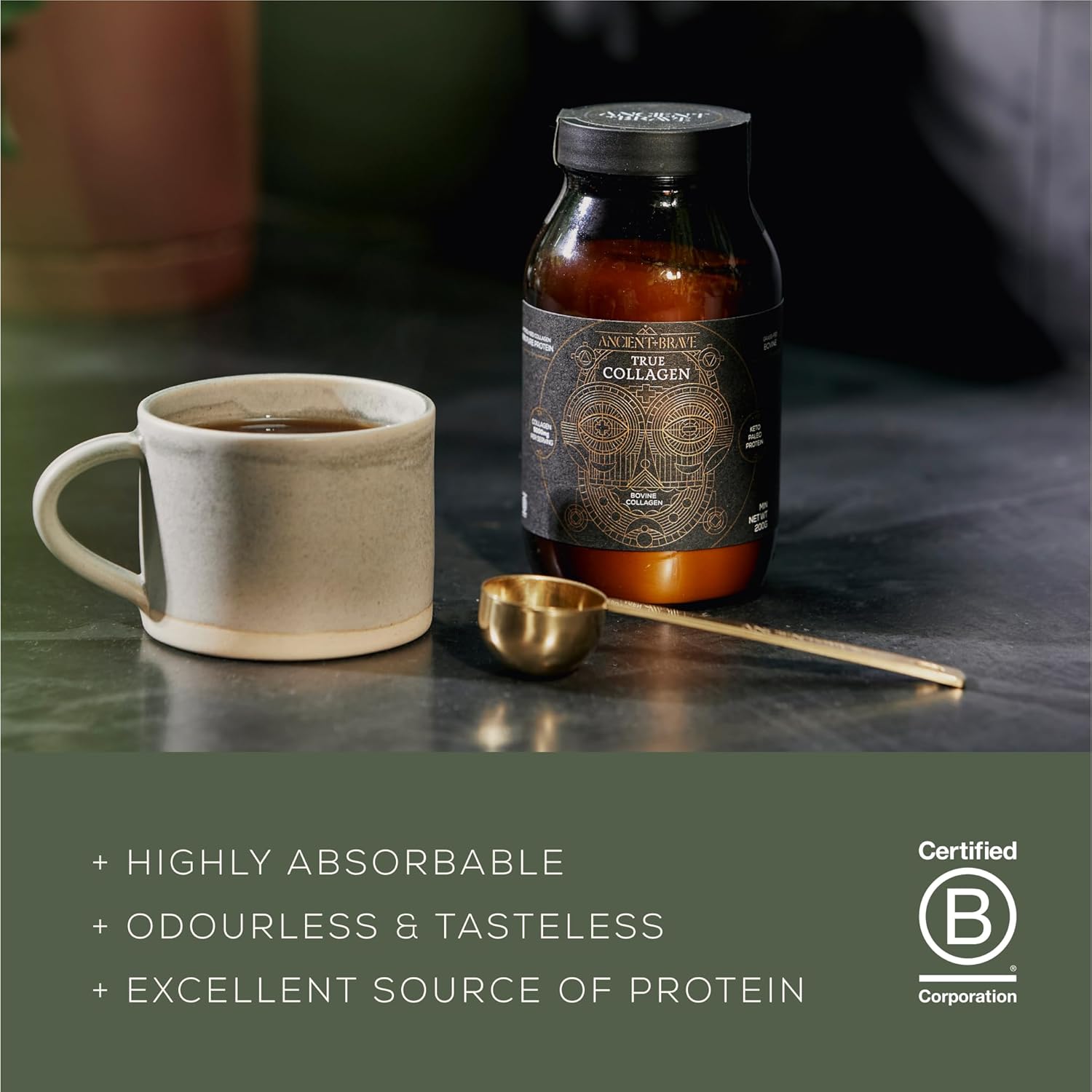 Ancient + Brave True Collagen 200g – Grass-Fed Bovine Collagen Powder – 100% Hydrolysed Collagen Peptides (Type 1) – High Protein, Fasting, Keto – Anti-Ageing, Skin, Hair & Nail Health