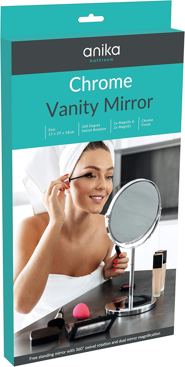Anika 66959 Chrome Finish Vanity Mirror | Bathroom/Makeup/Bedroom | 360° Swivel Rotation | Dual Magnification | 29cm x 18cm x 13cm