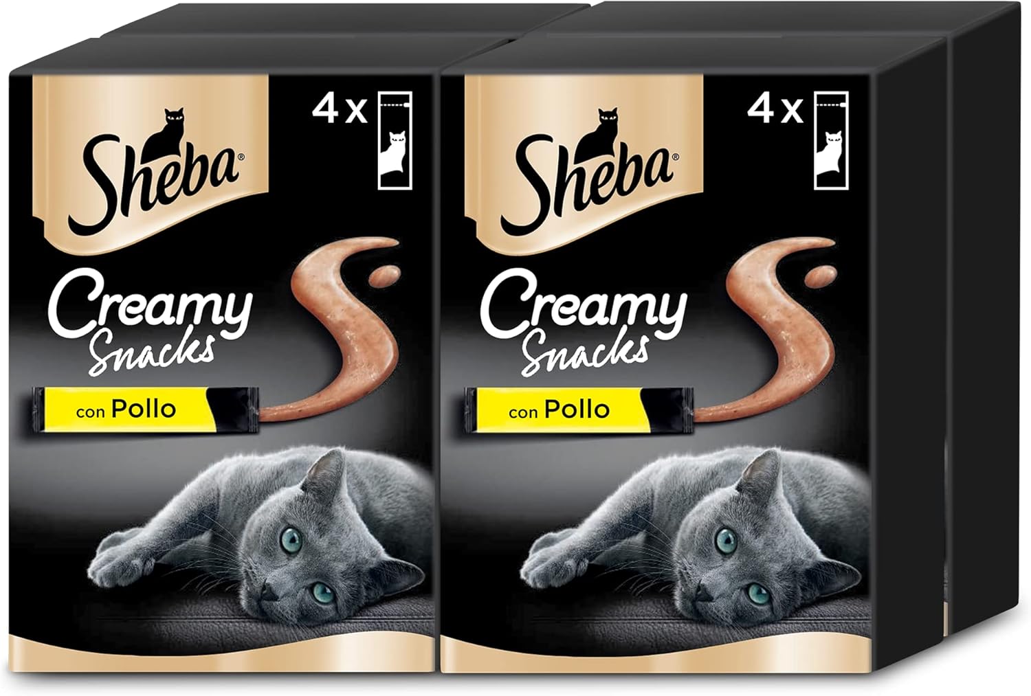 Supplementary food for adult cats – with chicken. Sheba Creamy Snacks, a delicious treat with a creamy texture, intended to be given by hand. A special experience that you will love sharing with your cat. Each snack is individually packaged, so freshness and quality of the product are retained. Developed by our nutritionists and veterinarians at the WALTHAM research centre, Sheba Creamy Snacks are free from artificial dyes and flavours.