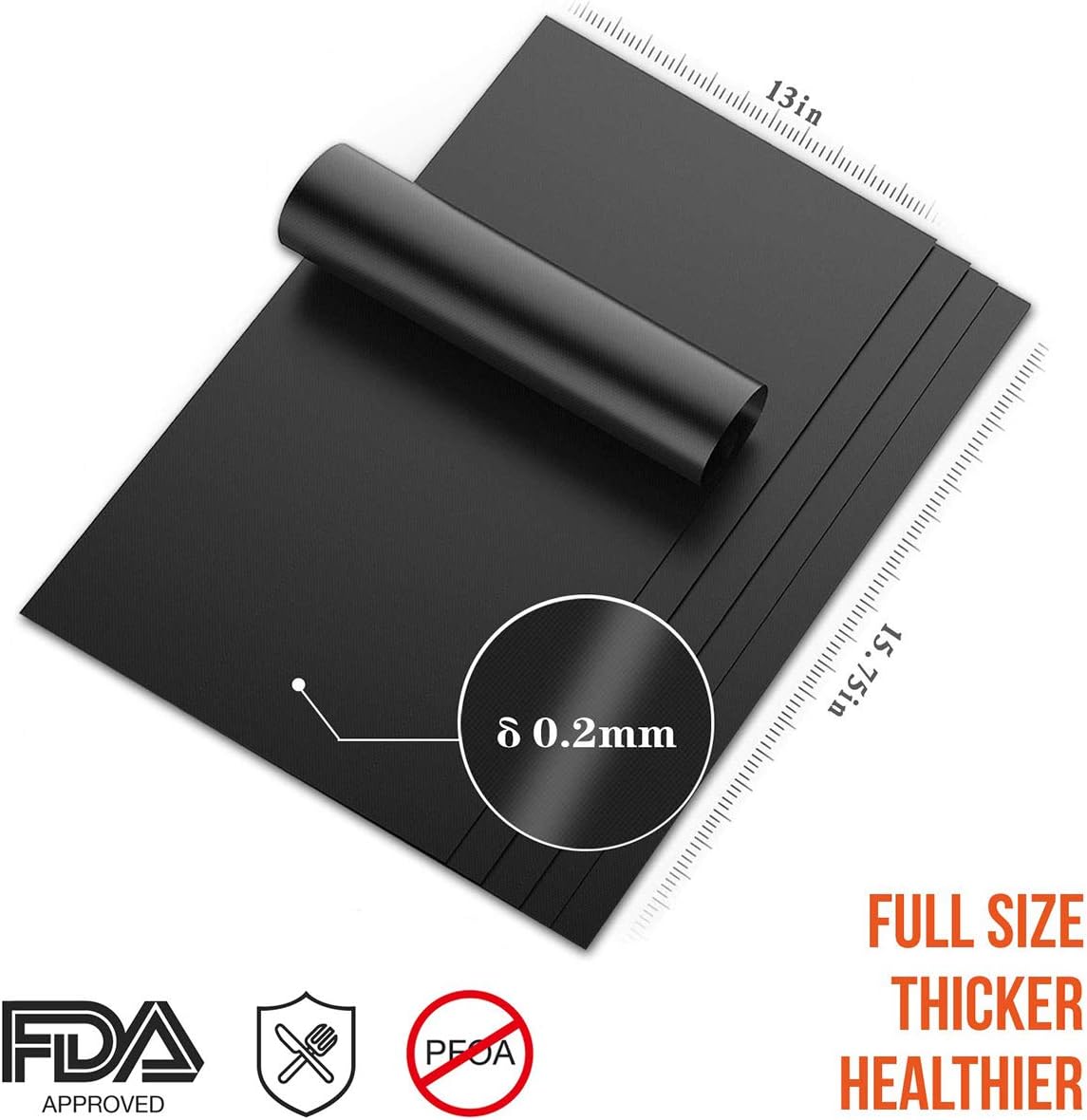 Material: PTFE coated fiberglass fabric Thickness: 0.2mm;Size: 40cm x 33cm Heat Range: -70-260℃” Color for BBQ Mat: Black
