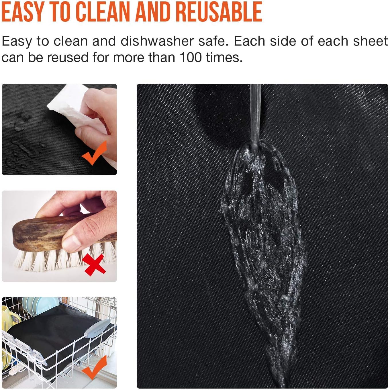 Easy to clean & Reusable ★ Baking Mats can be reusable used over 100 times, No more scrubbing grill grates every time you cook! Simply remove grilling mat once cool, wipe with a soft damp cloth and throw on to top shelf of dishwasher. Heavy-duty absorbent surface that protects decks from damage by trapping grease and other liquids associated with gas grilling.