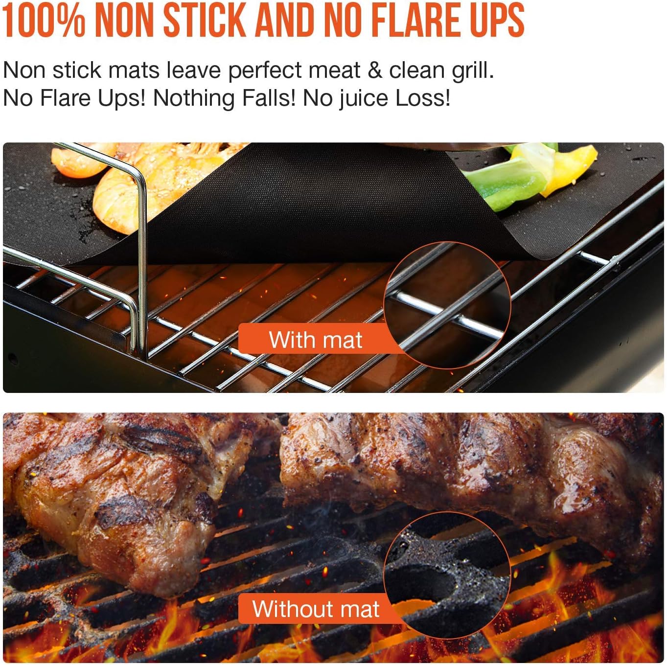 Heat Resistance ★ Made of heat-resistant technologically advanced materials,Can be used continuously in the environment of -70~260 °C, strong enough to conquer temperatures Up to 380°F. Won’t burn or shrink, our Special technology prevents flare ups, leaving you with the grill marks you love and less burned food.