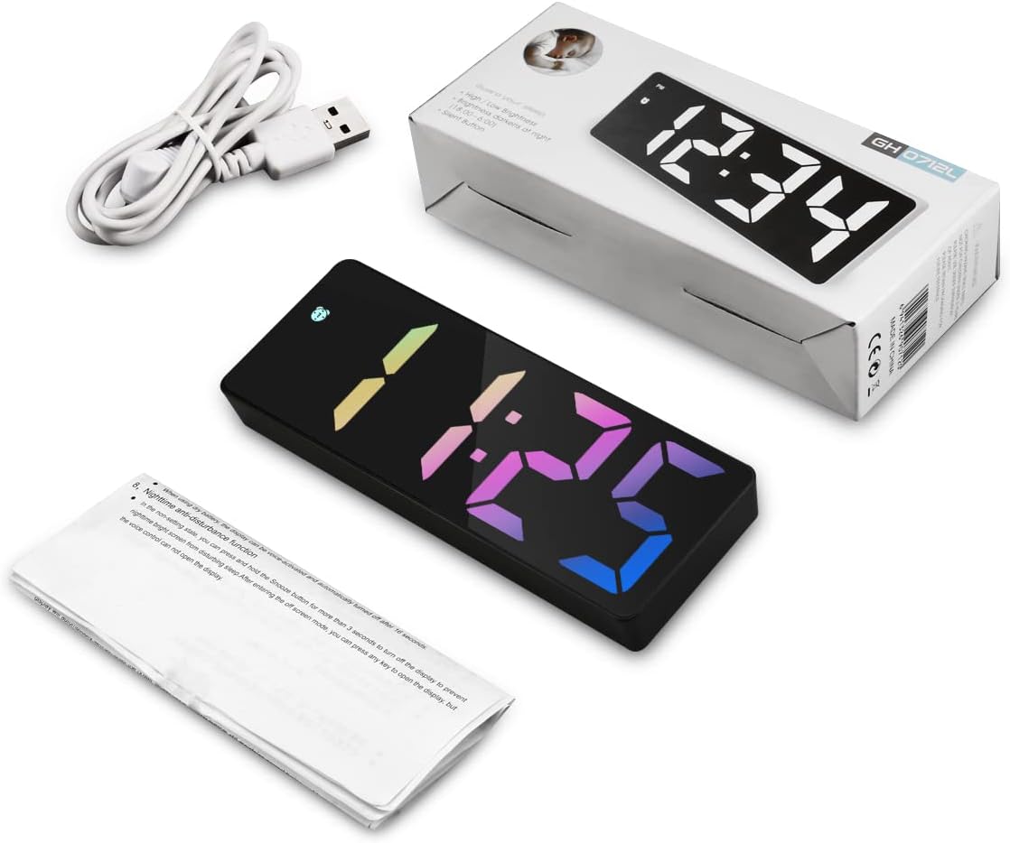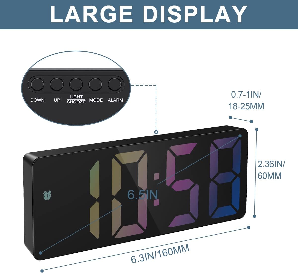 ⏰ 【Large Display & Multi-function】Digital alarm clock with large LED display (6.3″x0.7~1″x2.36″), which lets you check the time clearly at a glance even it is far from you. Our smart clock with 5 mode: clock mode, date mode, temperature mode, night mode (ON/OFF), alarm mode. The buttons on the rear are very self explanatory, so it is very easy to set up! The “colon” between the hour and minute display flashes continuously