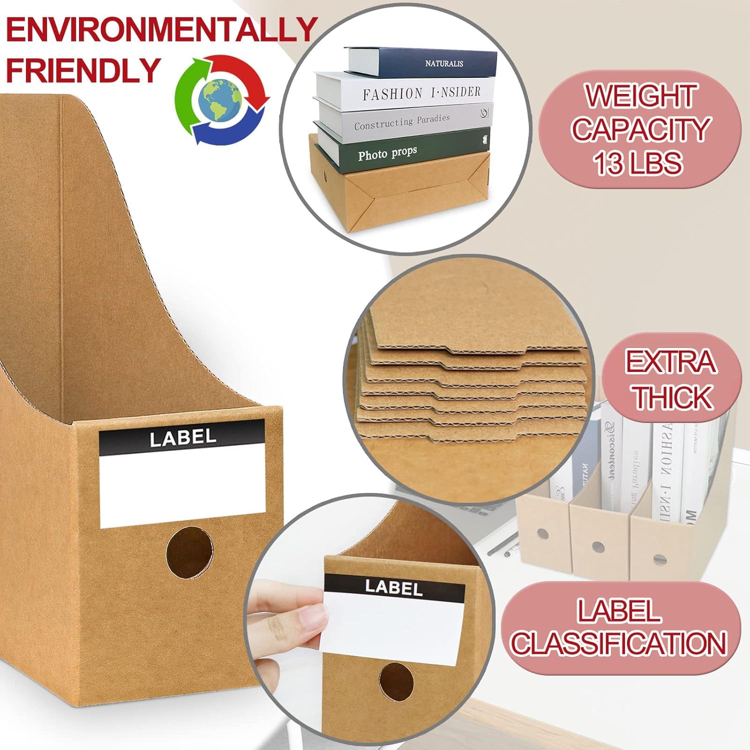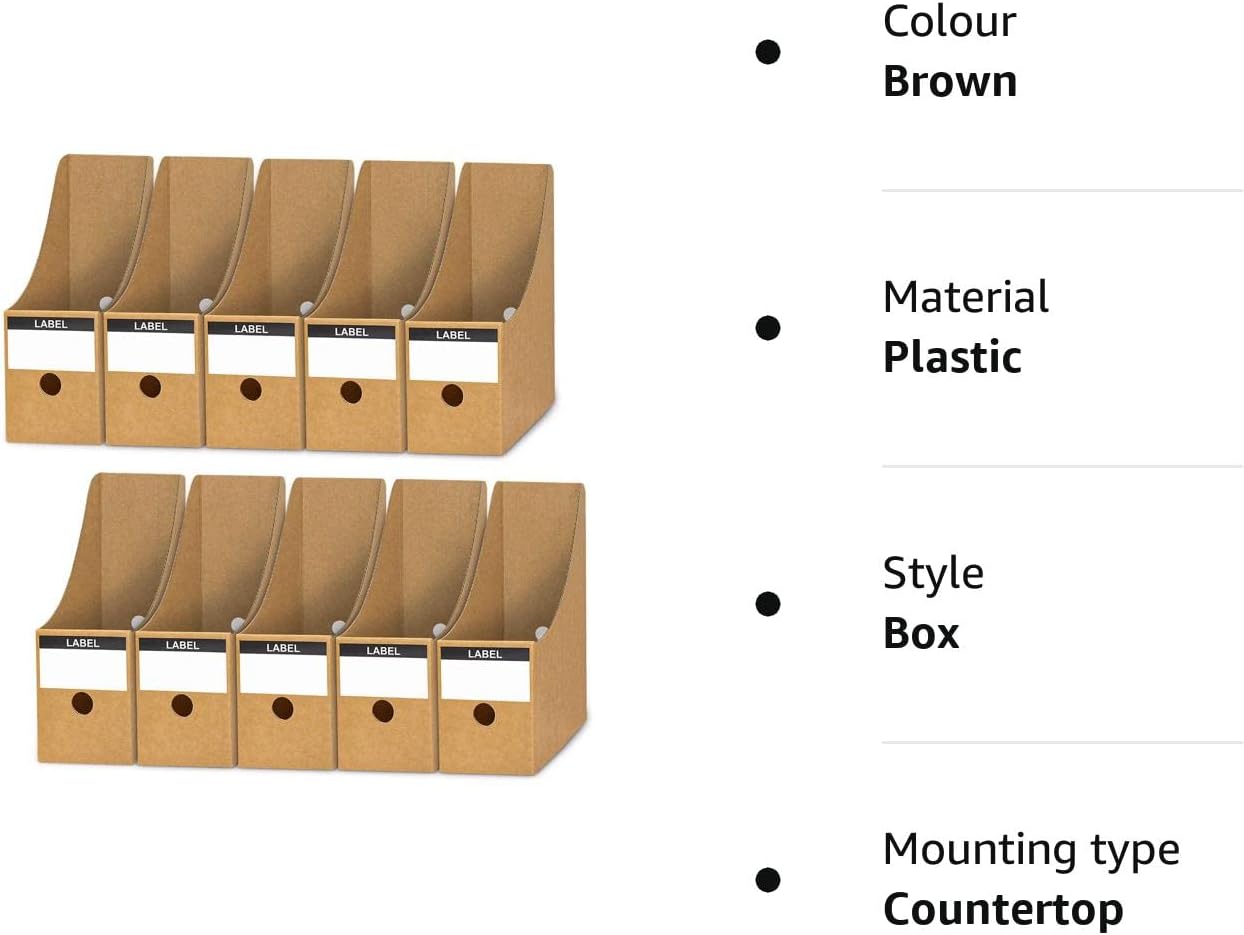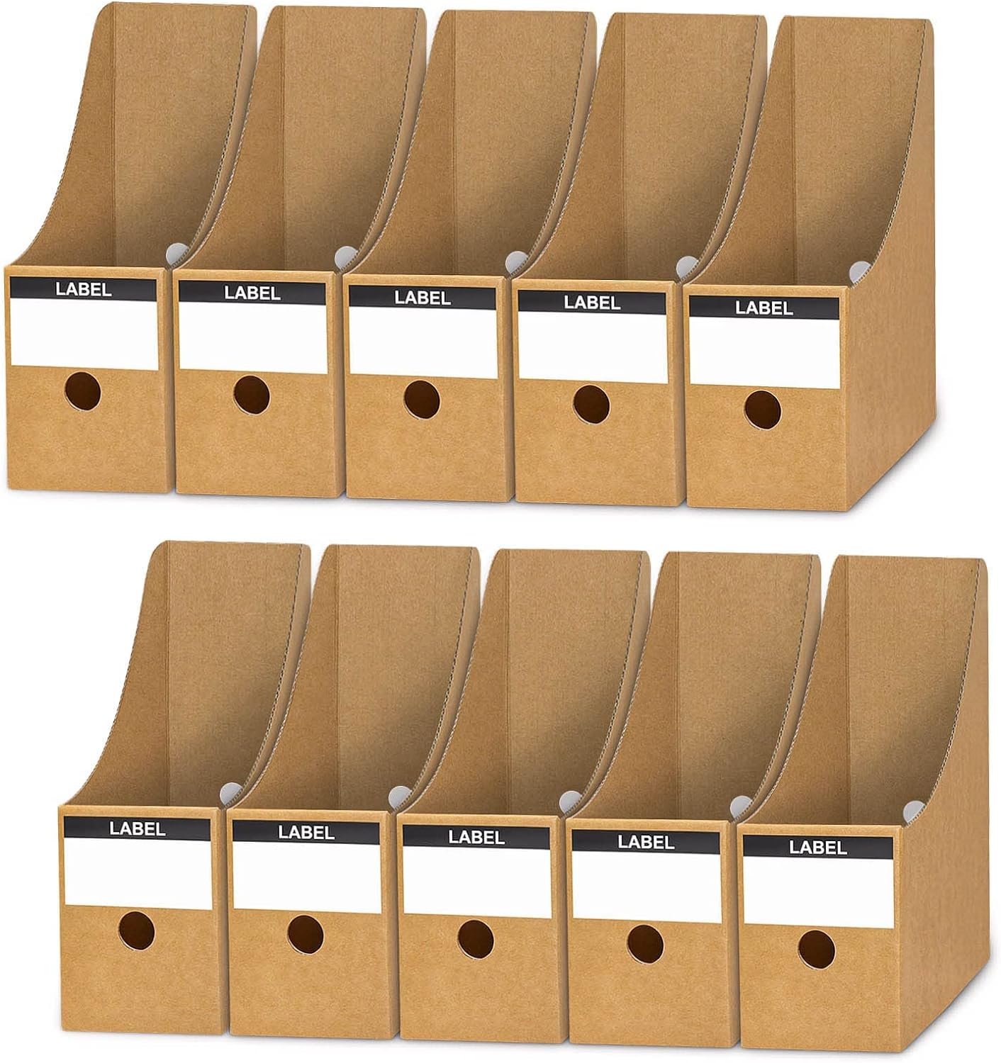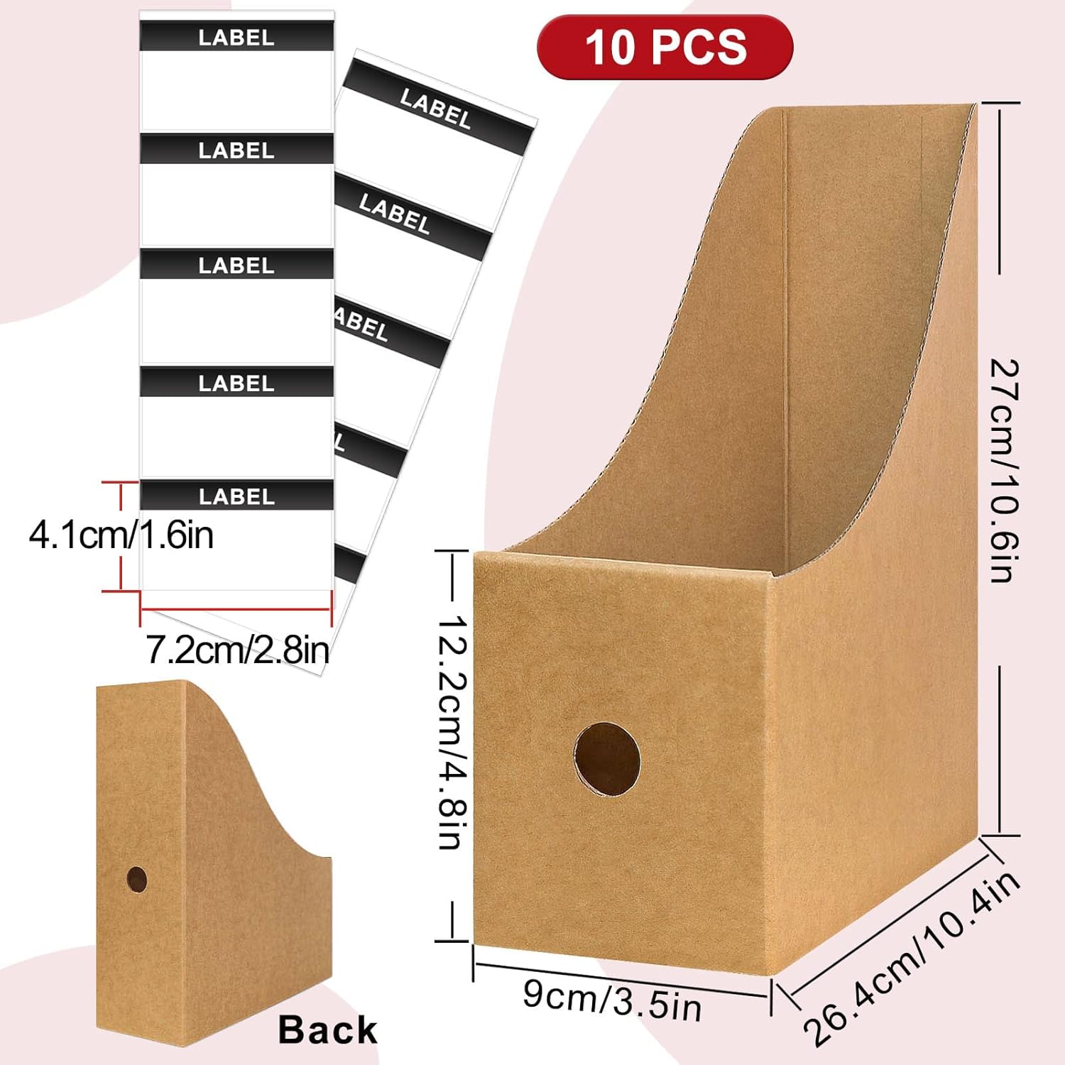 ANSTEEP Magazine File Holder Pack of 10, Cardboard Magazines Holders Document Storage Box Kraft Paper Files and Folders Divider Desktop Organizer for School Dormitory Office Home