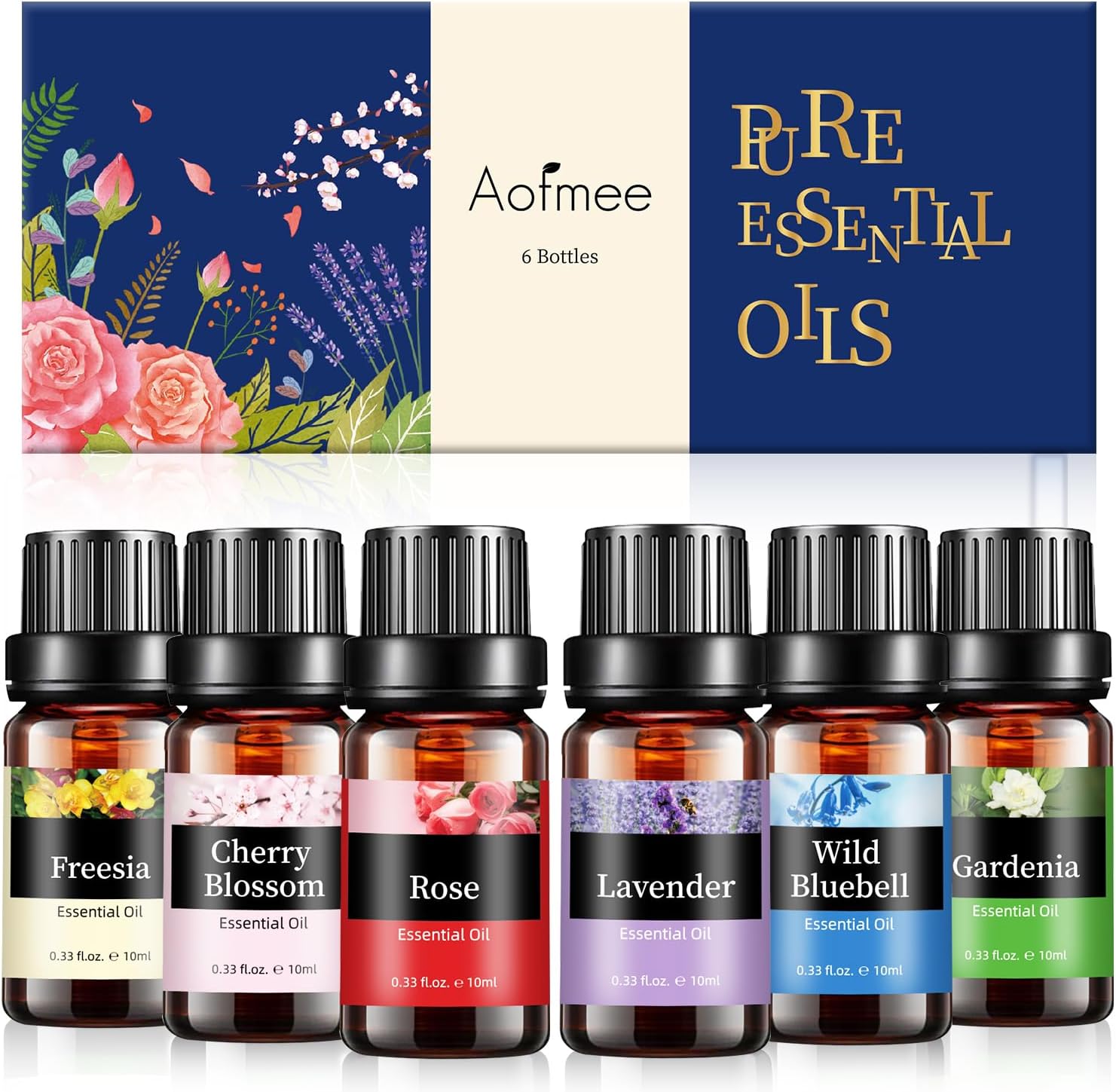 ❤️PREMIUM FLORAL ESSENTIAL OILS SET – Aofmee essential oils are specifically formulated to ensure that they are pure and potent. The scents are extremely rich, complex, and long-lasting. Our essential oil set includes 6 / 10ml essential oils: 🌹Rose, Lavender, 🌸Cherry Blossom, Gardenia, Wild-Bluebell, Freesia. Each with its own unique smell and potential benefits.