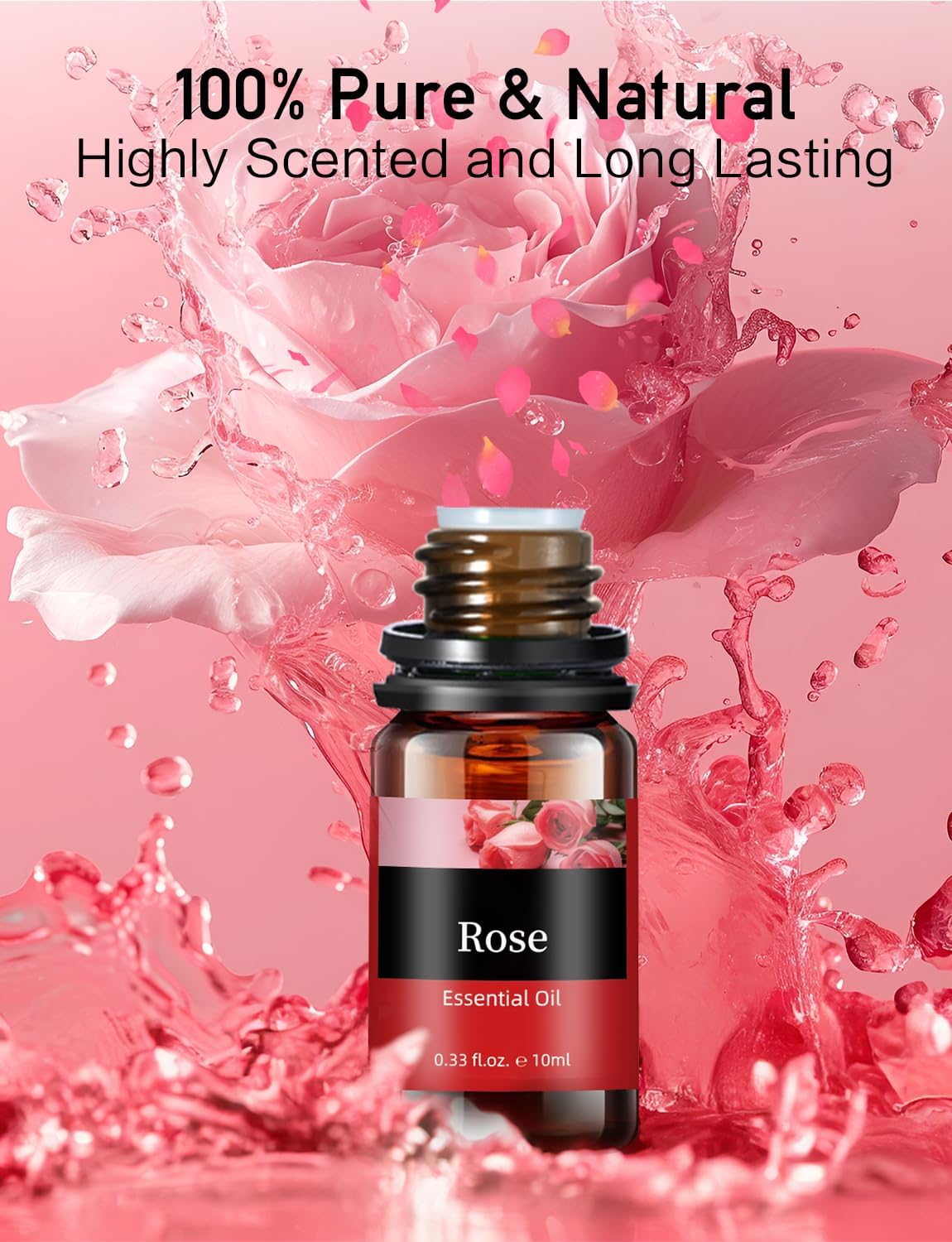 Aofmee Essential Oil, 6 x 10ml Essential Oils for Diffusers for Home, Lavender Essential Oils for Sleep, Floral Fragrance Oils for Soap & Candle Making Scents, Rose Aromatherapy Oil Gift Set for Women
