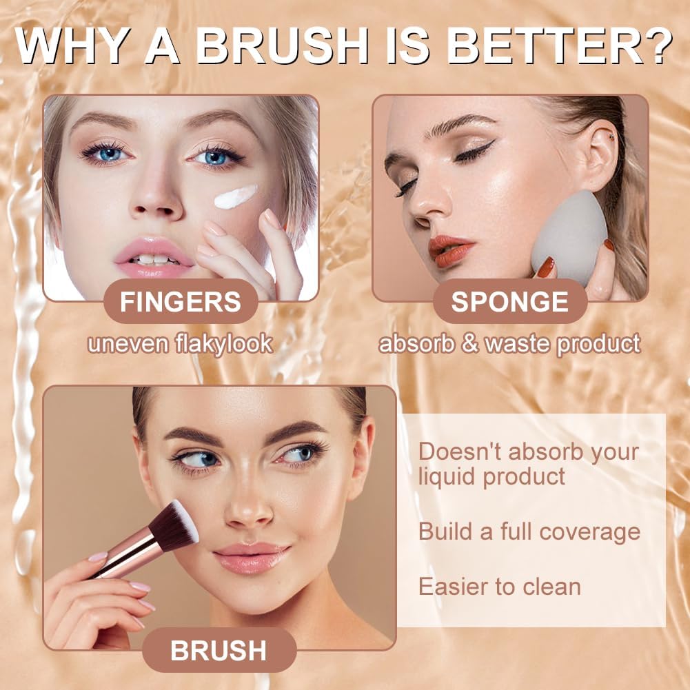 【Multifunctional Makeup Brush】Suitable for liquid, cream or foundation, this foundation brush helps you achieve full coverage, smooth and even application. Use with foundation, blush, highlighter, concealer, cream or liquid products to easily cover small blemishes, spots and even acne for a flawless finish.
