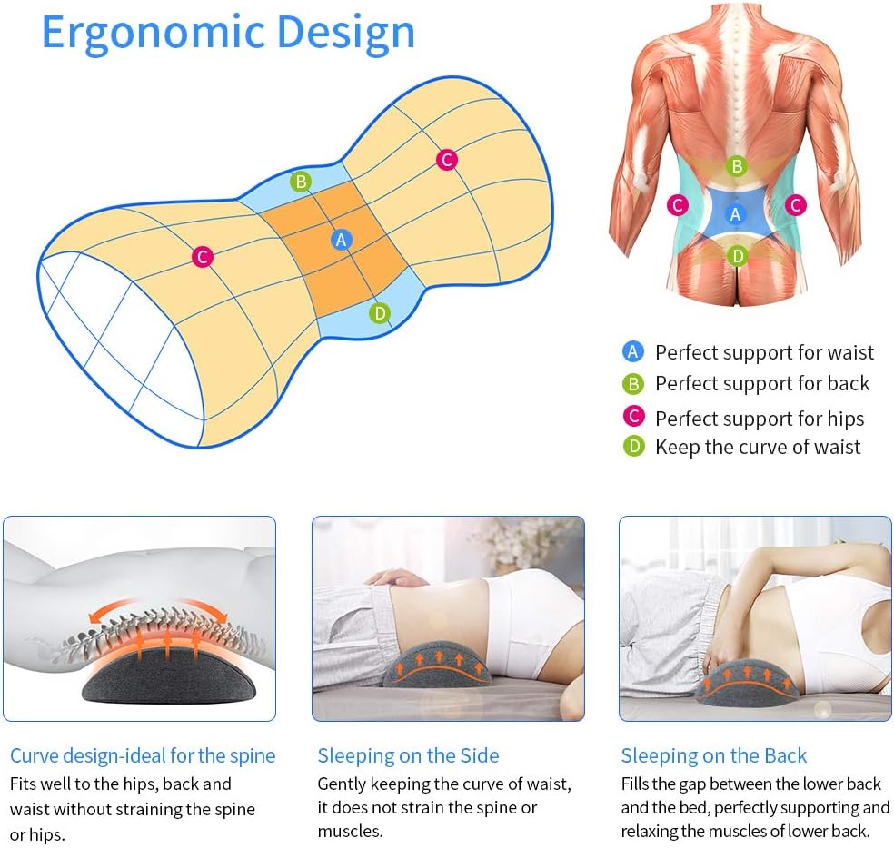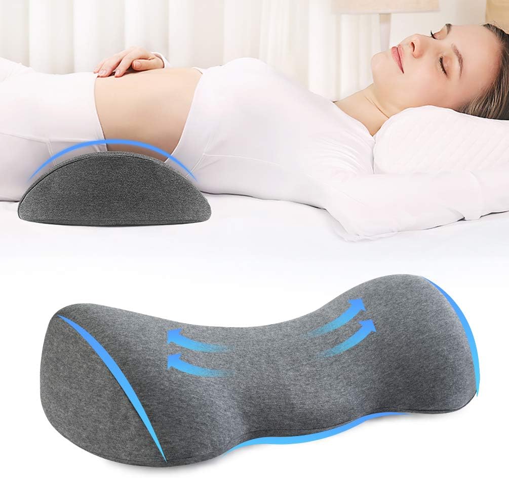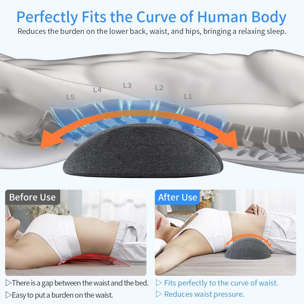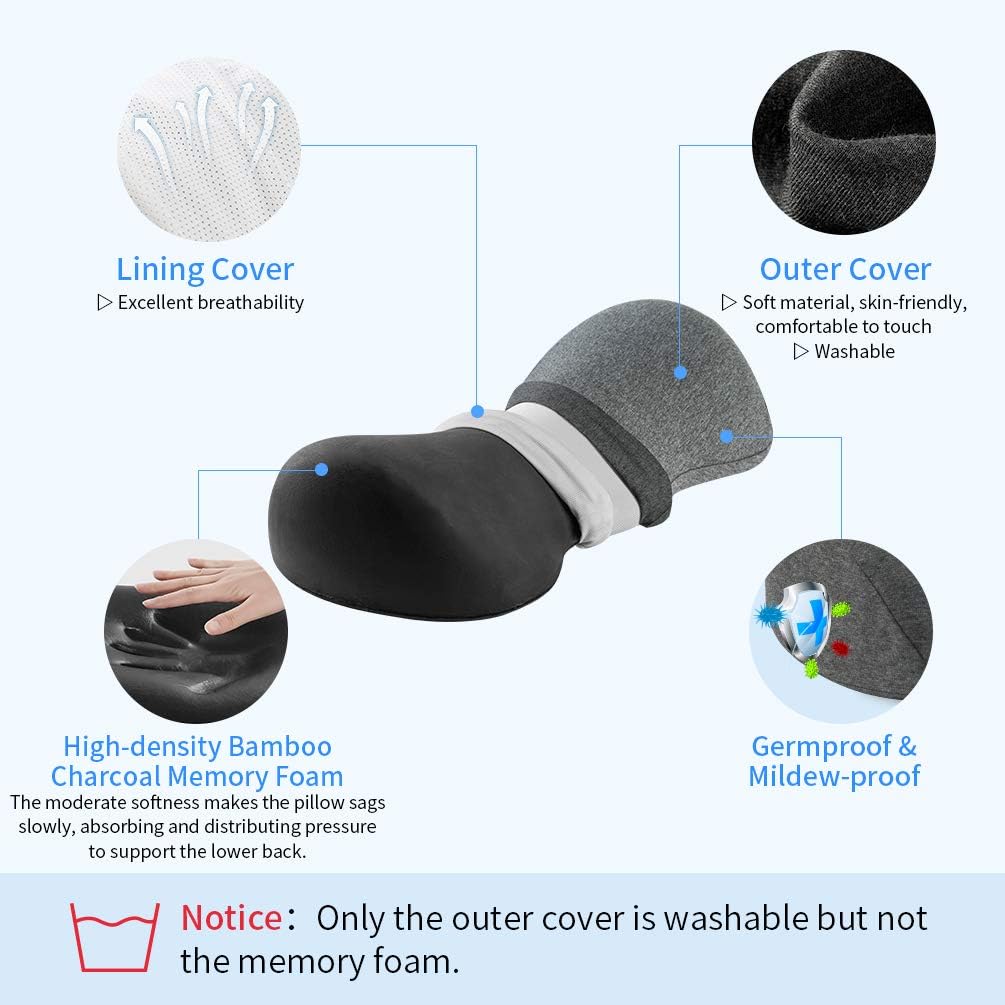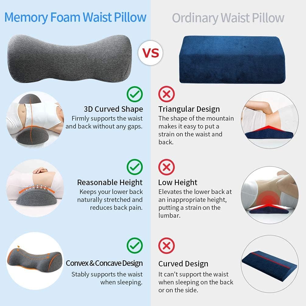 AOPOW Lumbar Back Support Pillow Cushion – Memory Foam Lower Back Sleeping Pillows Pain Relief Lumbar Cushions for Bed Chair Car Office Travel