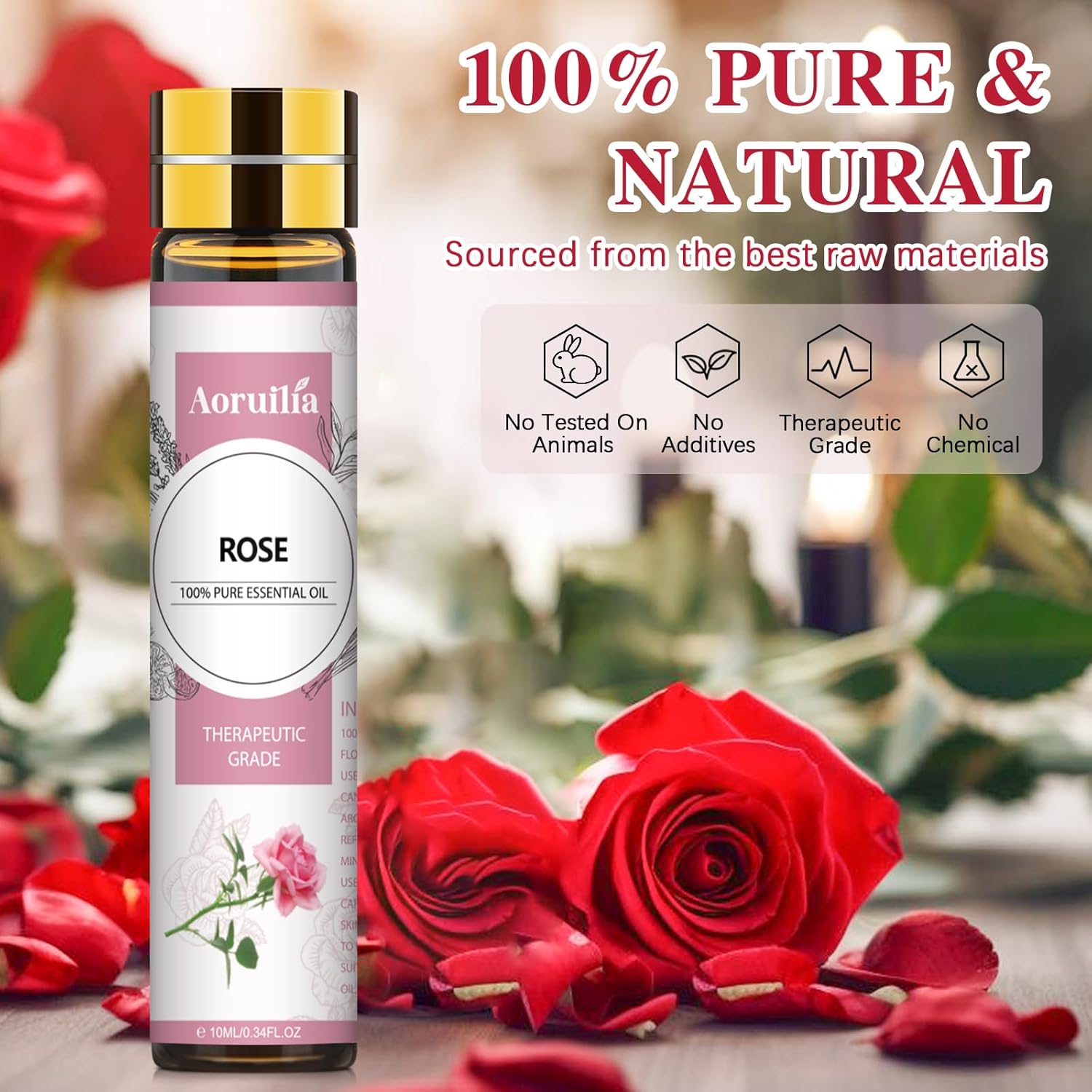 Aoruilia 10ml Rose Essential Oil – Premium Grade Natural Rose Oil Aromatherapy Essential Oils for Diffuser for Home Fragrance, Perfume, Bath, Soaps & Candles Making