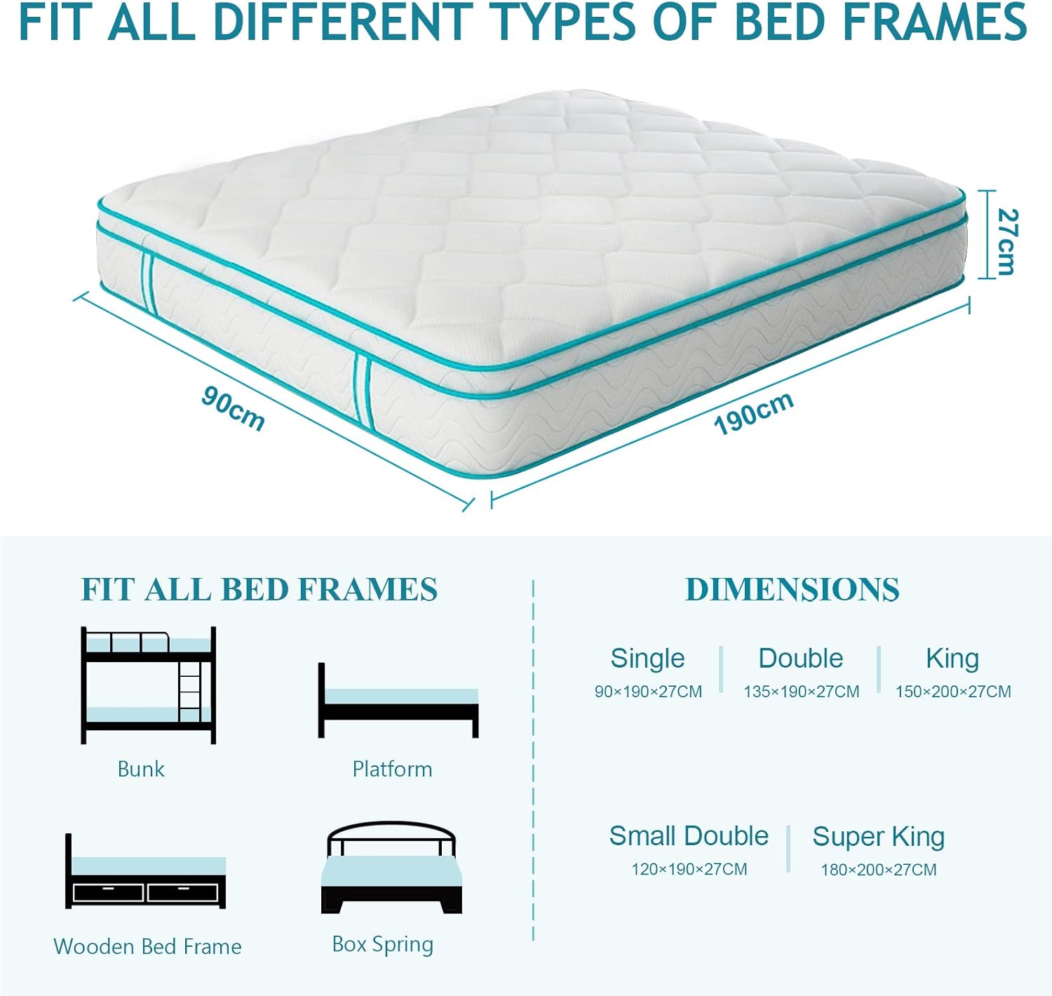 Aotumm Ciort Single Mattress – 3FT Medium-firm Hybrid Mattress, 10.63 Inch Hybrid Mattress with Breathable Foam, Pocket Sprung for Cool Comfy Silent Sleep, Zoned Support Single Mattress (90x190x27cm)