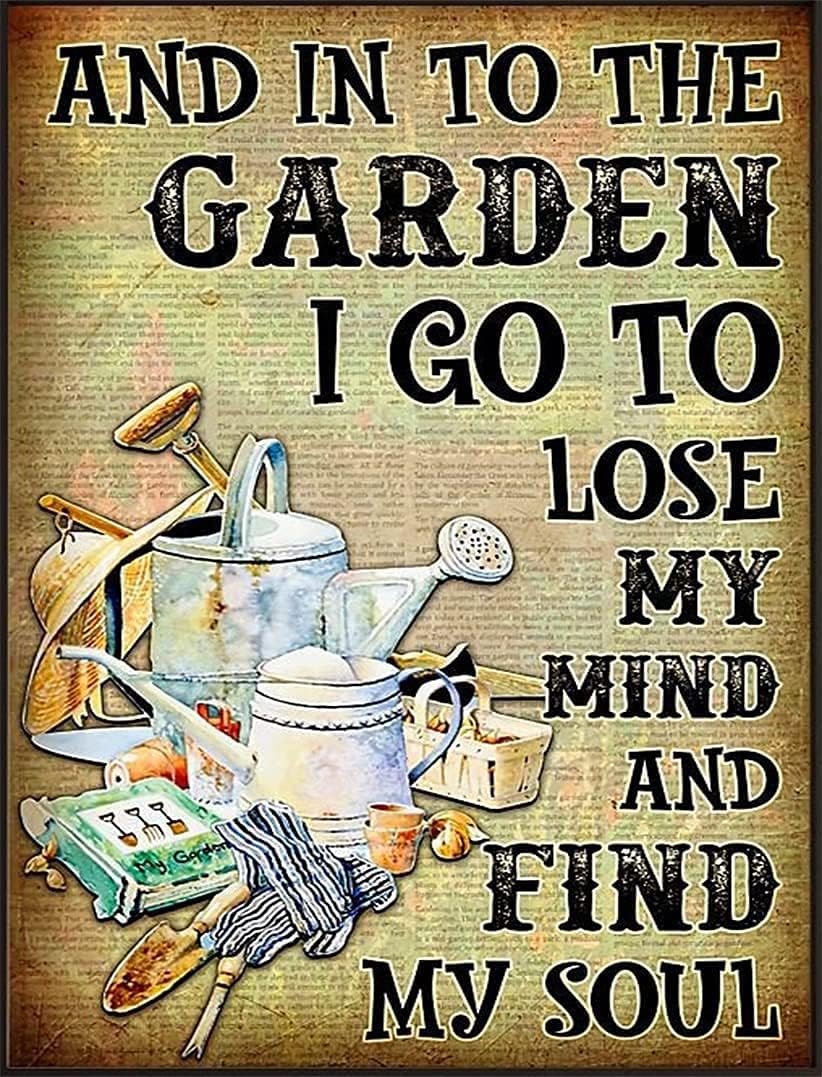 Aperiy Looking for My Soul in The Garden Posters, Gardening Prints, Gifts from Farmers, Signs of Home, Metal Sign Indoor Outdoor Poster Tin Sign Metal Home Wall Decoration 8x12inch