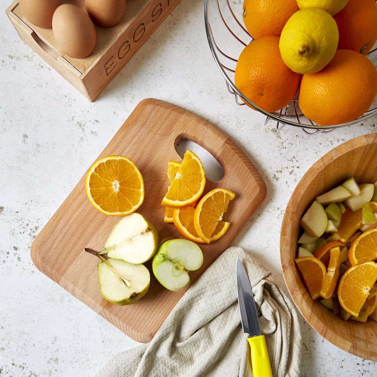 KITCHEN ESSENTIAL: Comfortably prepare meals with the Apollo Housewares beech chopping board. Our board is a perfect kitchen utensil for cutting and chopping your food while also allowing the board to be used as a tray or even a charcuterie board.