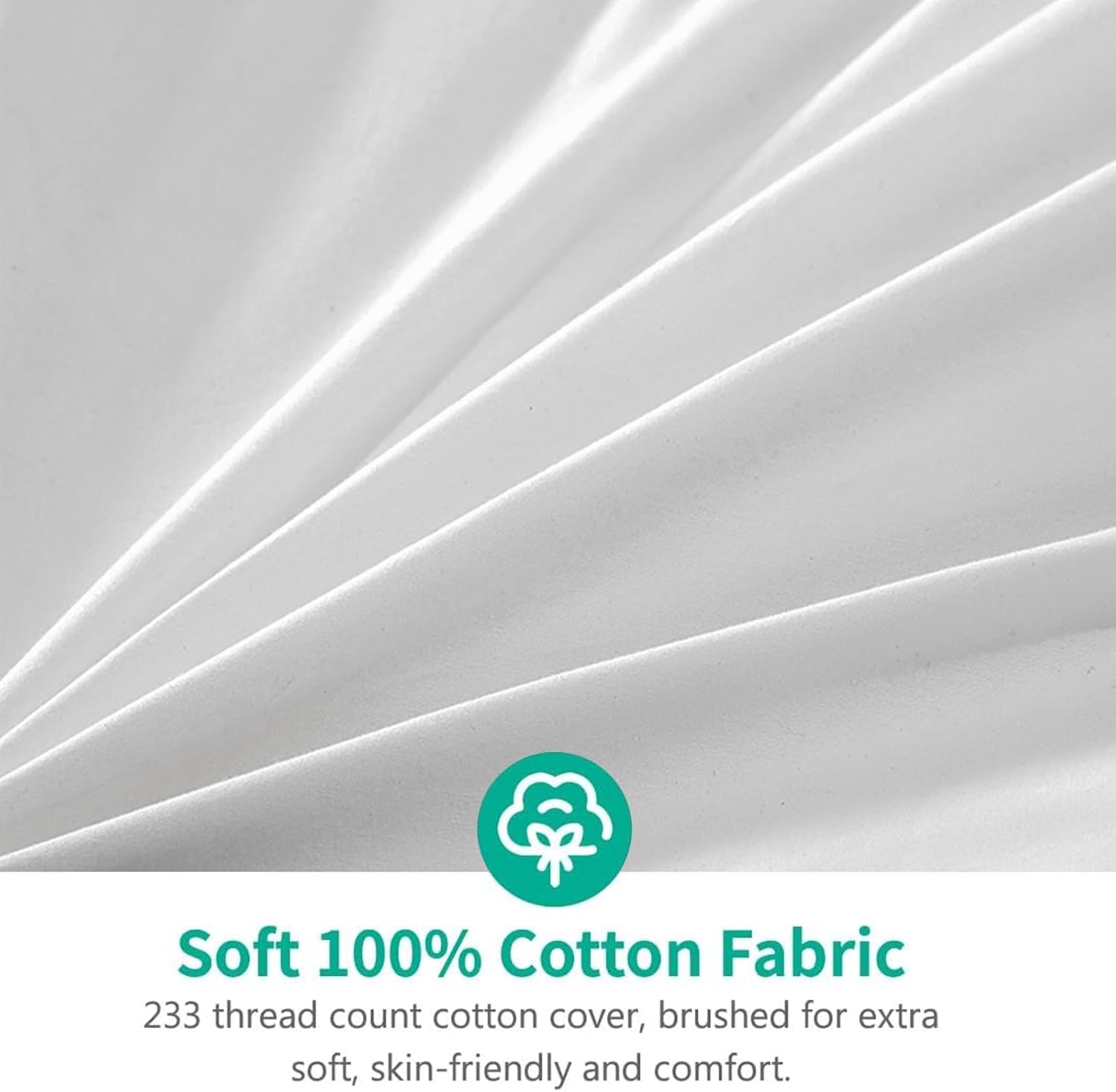 The ultra soft, breathable, 233 thread-count organic cotton fabric cover can effectively reduce feather and down leakage while giving you a feeling of freshness throughout the night.