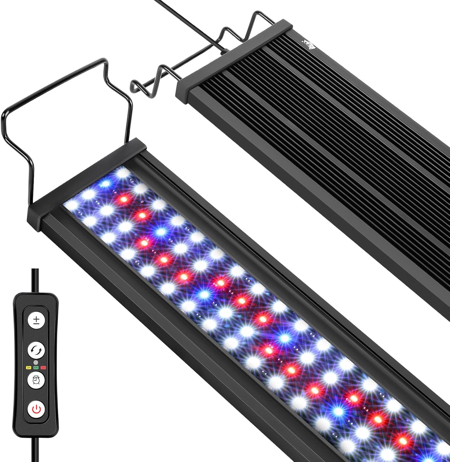 AQQA Aquarium Light, Full Spectrum Fish Tank Light for Plants with Timer Auto On/Off,Waterproof LED Aquarium Light with Extendable Brackets,5 Levels Adjustable Brightness,14 Colors