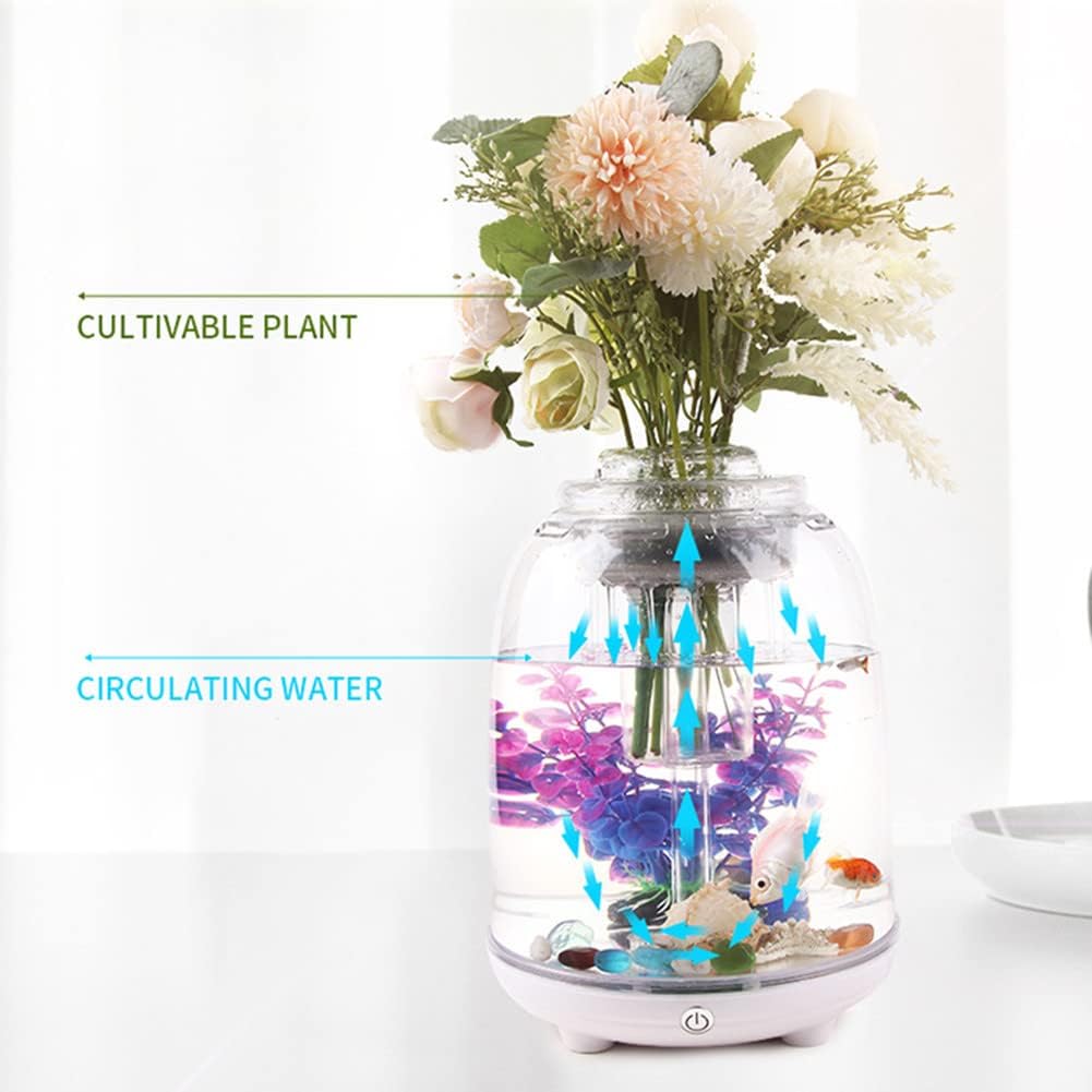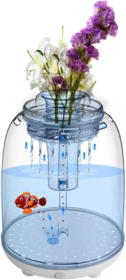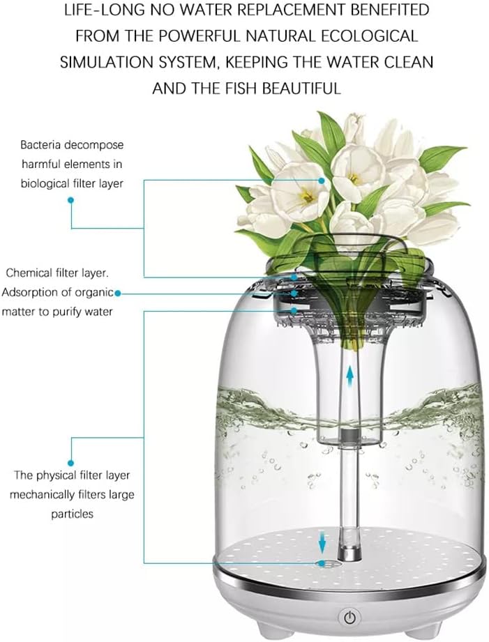 Our tank takes a more special approach to growing flowers and raising goldfish, allowing them to form a small ecosystem for symbiosis.Use high-quality PC+ABS plastic, transparent material, allowing you to watch fish and plants grow 360°We have a six-layer filtration system, our water pump can pump dirty water to the flowers, and the nutrients after the microorganisms decompose the fish manure can be absorbed by the plants and circulated repeatedly.With seven color lighting effects, you can watch the goldfish in motion even at night, and make your tank more charming. You can grow succulents, hydroponic greens, and your favorite flowers in fish tank pots, it will be a perfect home decoration