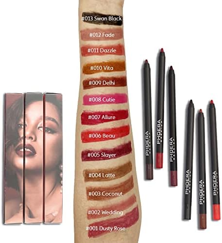 PHOERA LIP LINER AND EYELINER 3PCS SET Multifunctional matte lipliners are also wonderful eyeliner, soft and smooth texture help make perfect eye look and lip look. HOW TO APPLY THE LIPLINE AND EYELINERHOW TO APPLY THE LIPLINE AND EYELINERHOW TO APPLY THE LIPLINE W 1.Use a lip liner to dram from the upper lip from the lip head position to the lip angle. 2.The lower lip is drawn from the left and right to the centre of the lip angle. 3.Make a full lip line with the connection. 4.Fill in the contour colour or apply a similar lightly over your lips. SUPER-STAY EYELINER AND LIPLINER, LONG-LASTING, WATER PROOF Our 24-hour wear eyeliner ensure that after just one application, your look will stay set and picture perfect from morning to evening! Waterproof and smudge-proof, the highly pigmented and easy-glide, creamy pencil eyeliners are a must-have beauty staple that create a perfect, full lash line or a playful, coloured look that lasts all day.