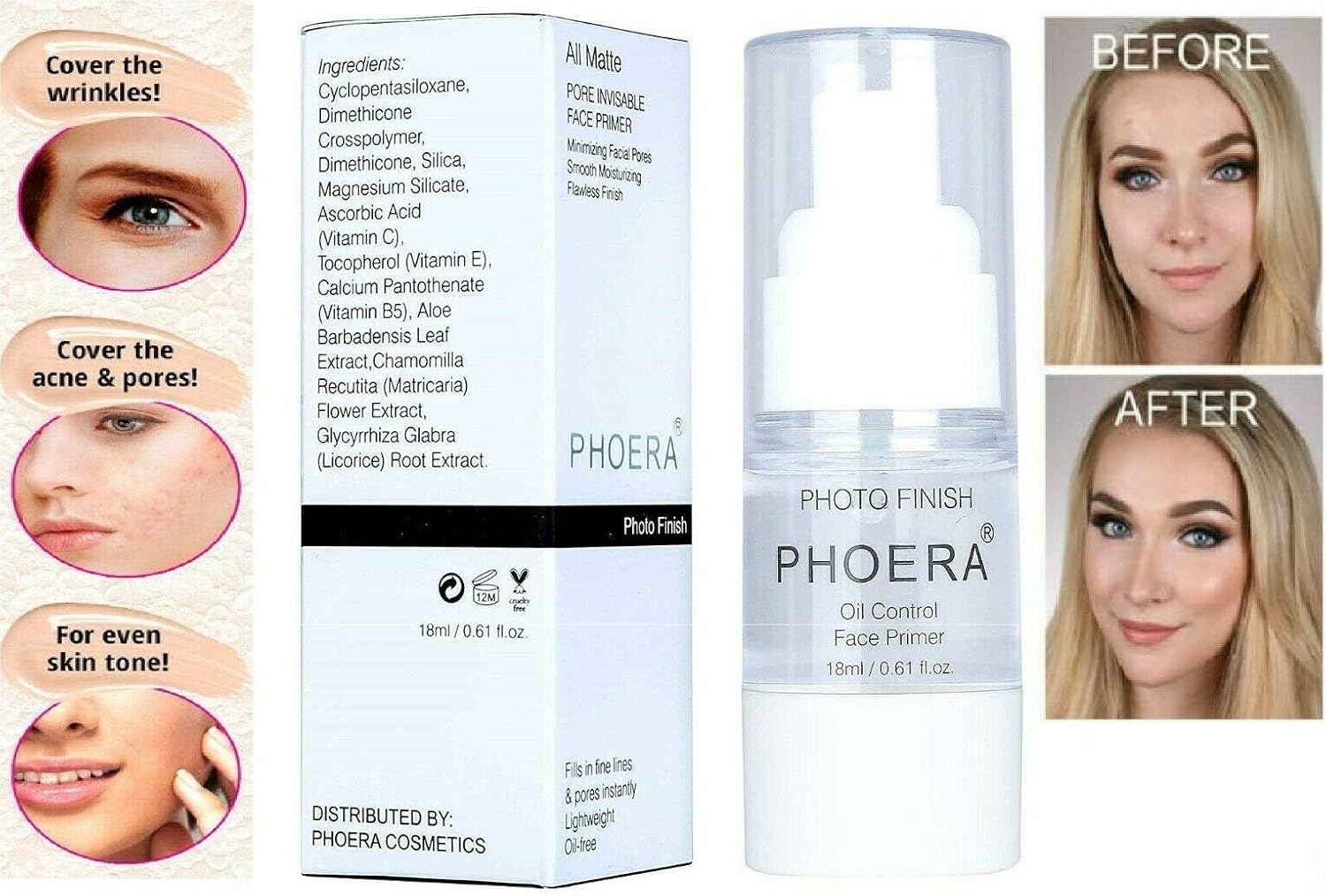 AQUAPURITY – PHOERA Primer Matte Finish Face Makeup Pore filler Primer Foundation Base Oil Control Full Coverage Make Up Base Concealer Long Lasting Flawless Pores Minimiser Liquid Moisturizing (18ML)